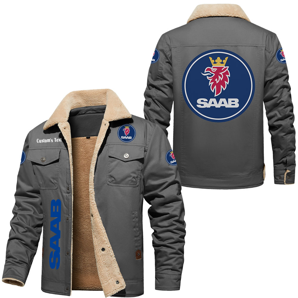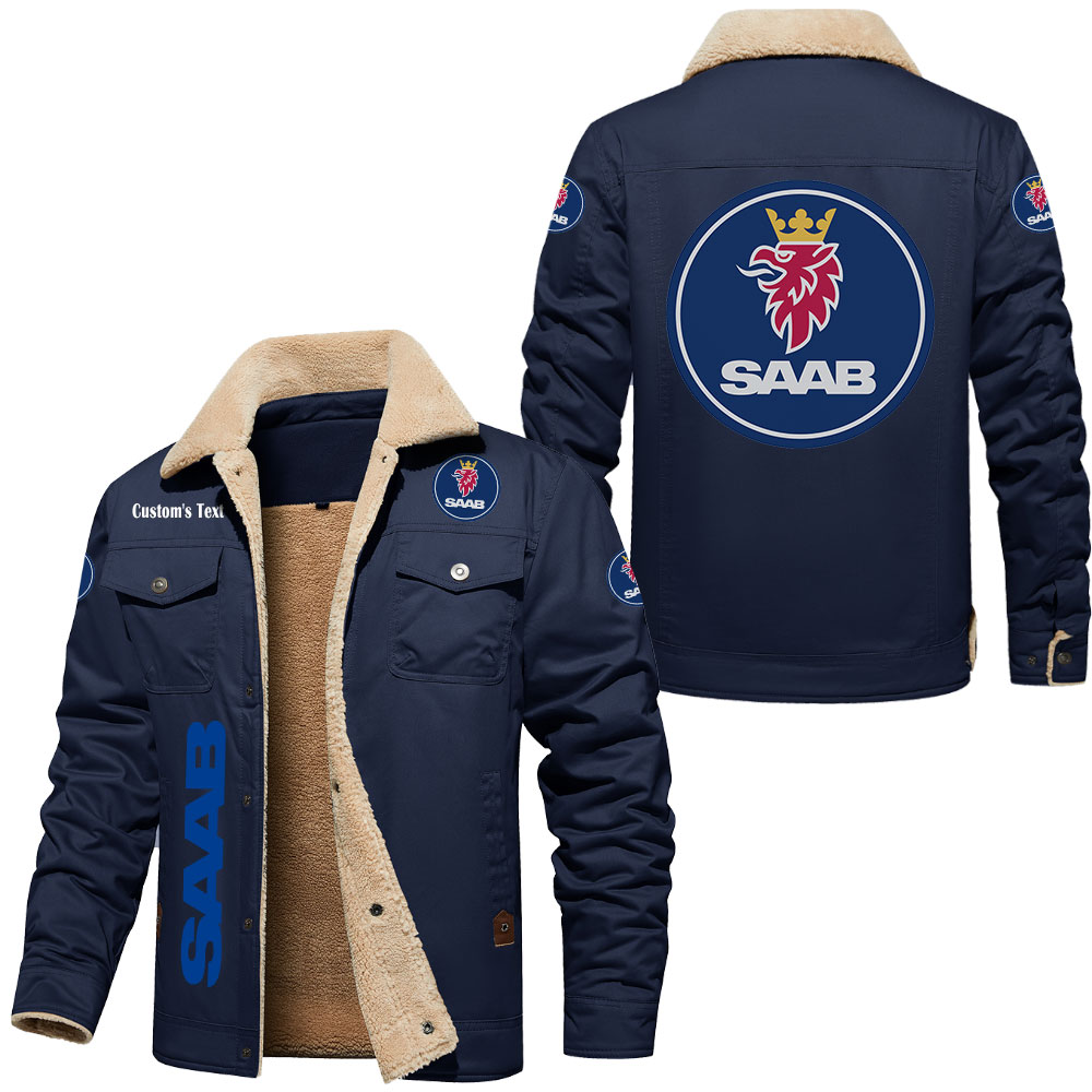 Saab Logo Custom Text Cargo Fleece Lined Cotton Jacket