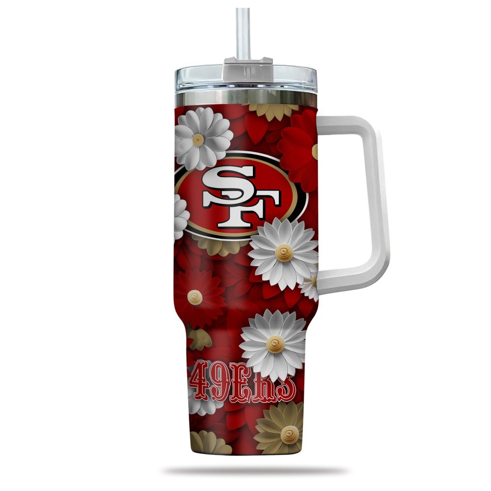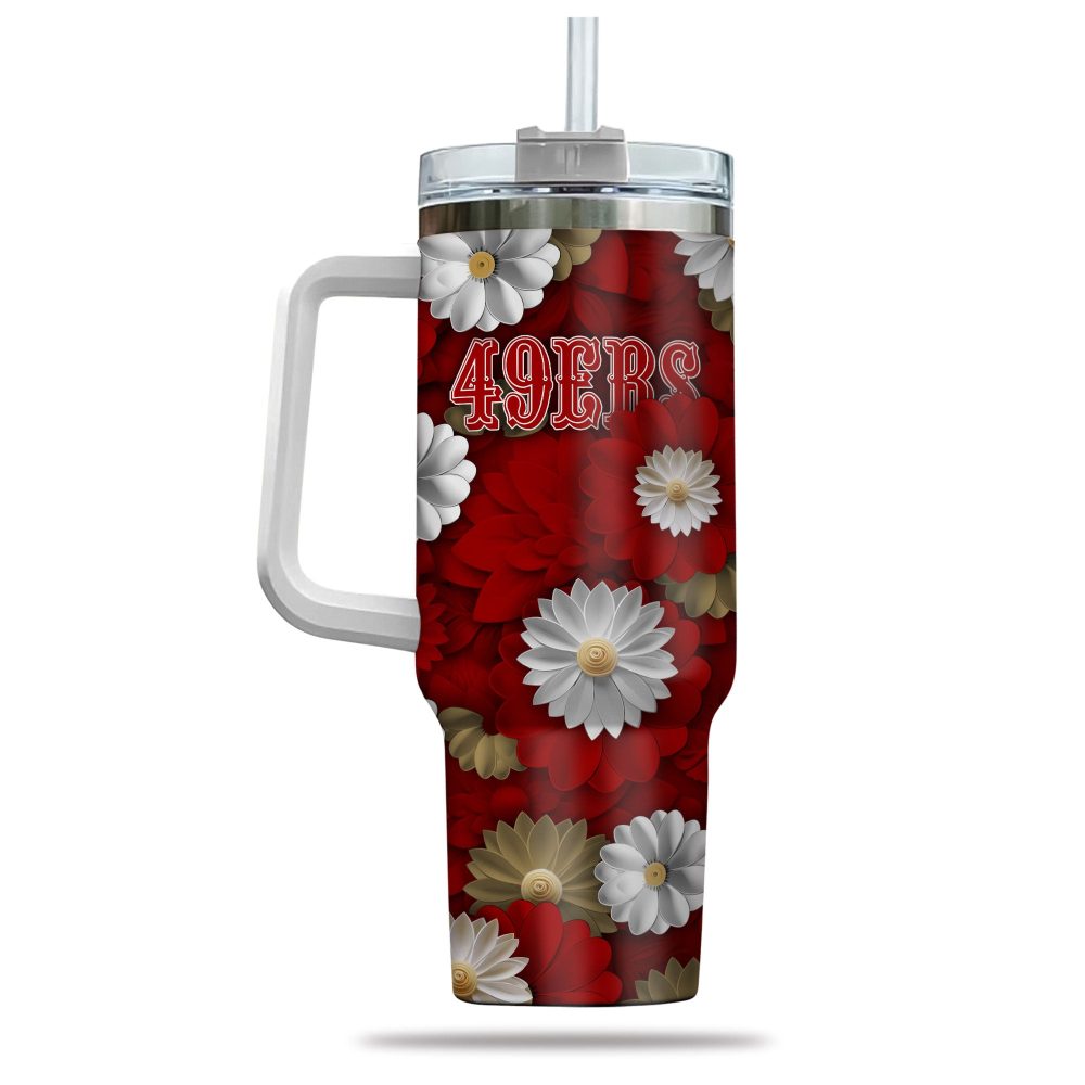 San Francisco 49Ers Nfl Flowers Custom Stanley Quencher 40Oz Stainless Steel Tumbler With Handle