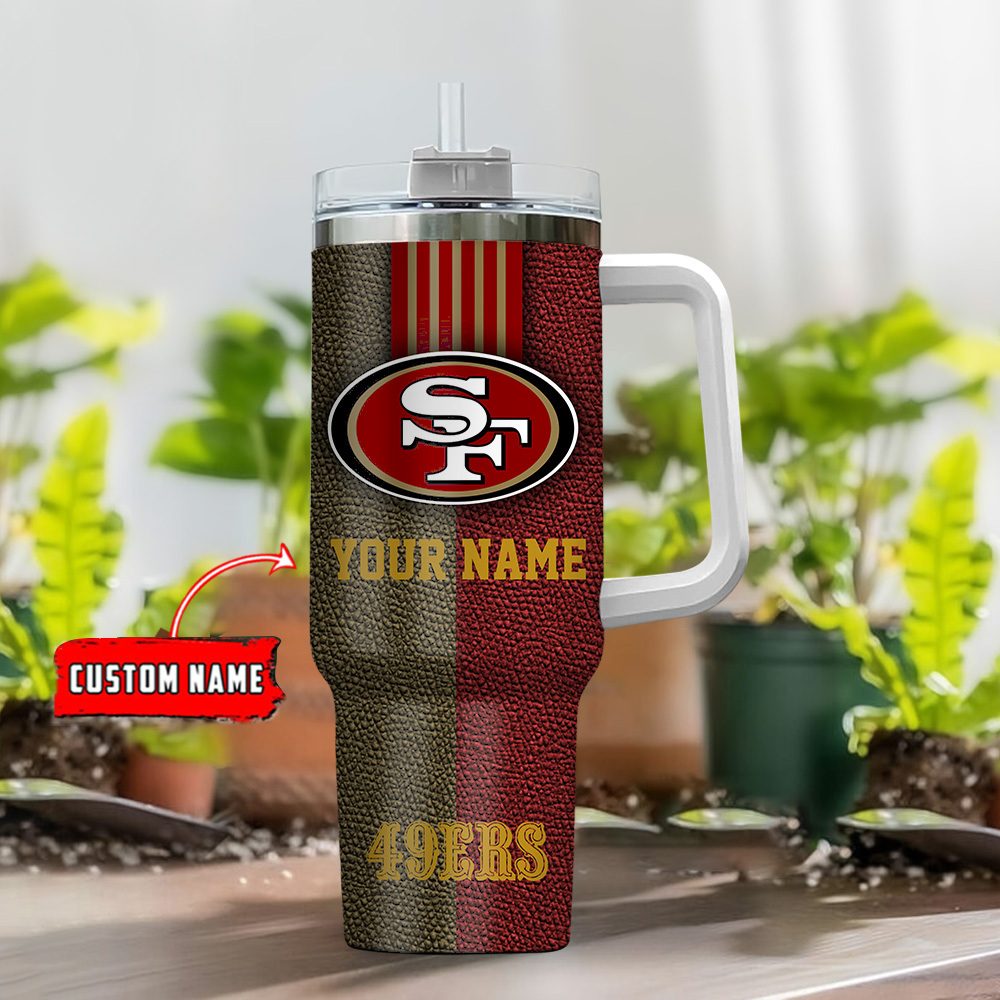 San Francisco 49Ers Nfl Leather Effect Custom Stanley Quencher 40Oz Stainless Steel Tumbler With Handle