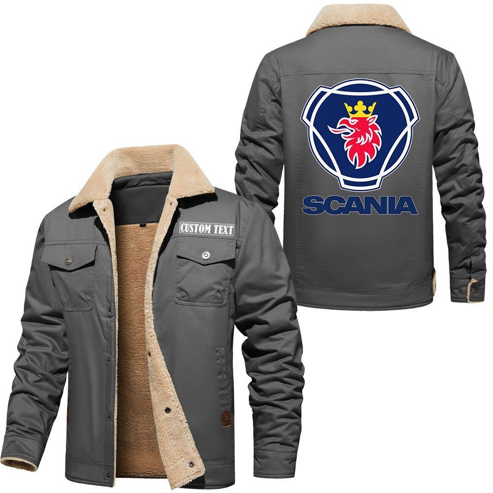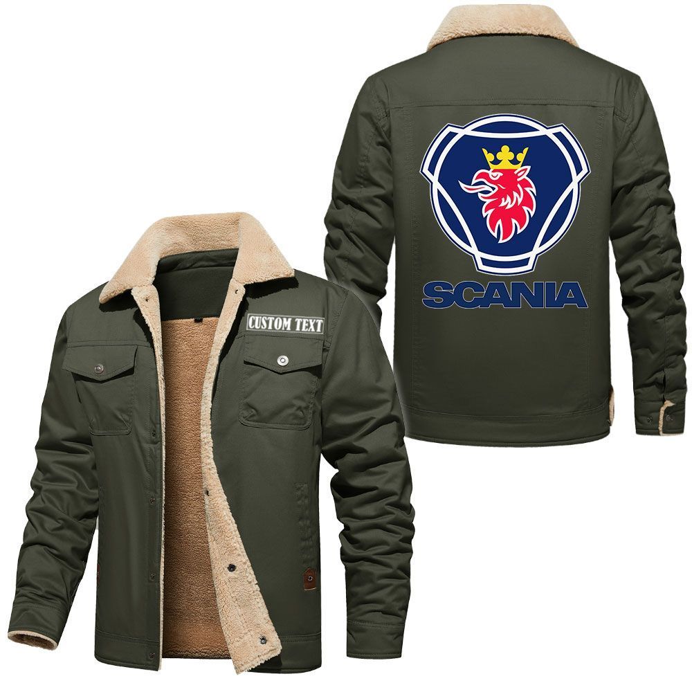 Scania Logo Custom Name Cargo Fleece Lined Cotton Jacket Stylish Warm Personalized Outerwear