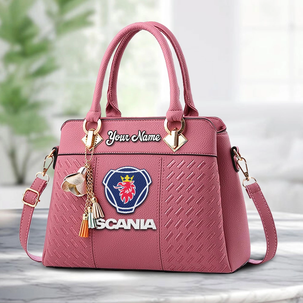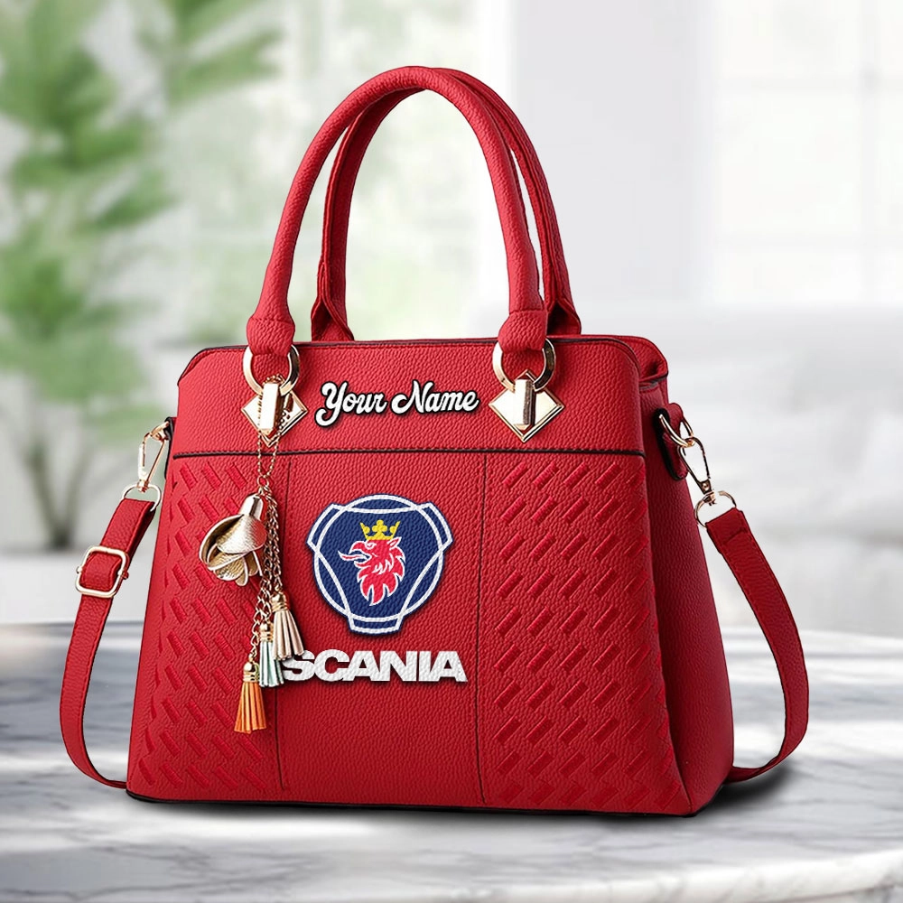 Scania Logo Personalized PU Leather Handbag Custom Name For Women
