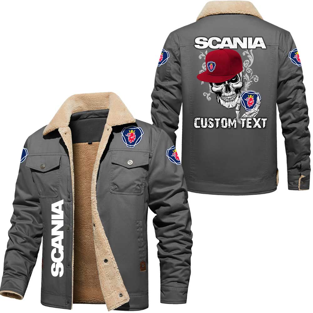 Scania Skull Custom Name Cargo Fleece Lined Cotton Jacket
