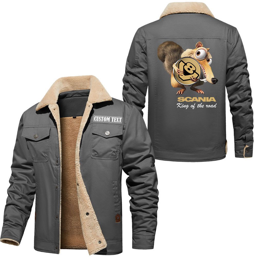 Scania V8 Logo Custom Name Cargo Fleece Lined Cotton Jacket Scrat Ice Age Design Personalized Outerwear
