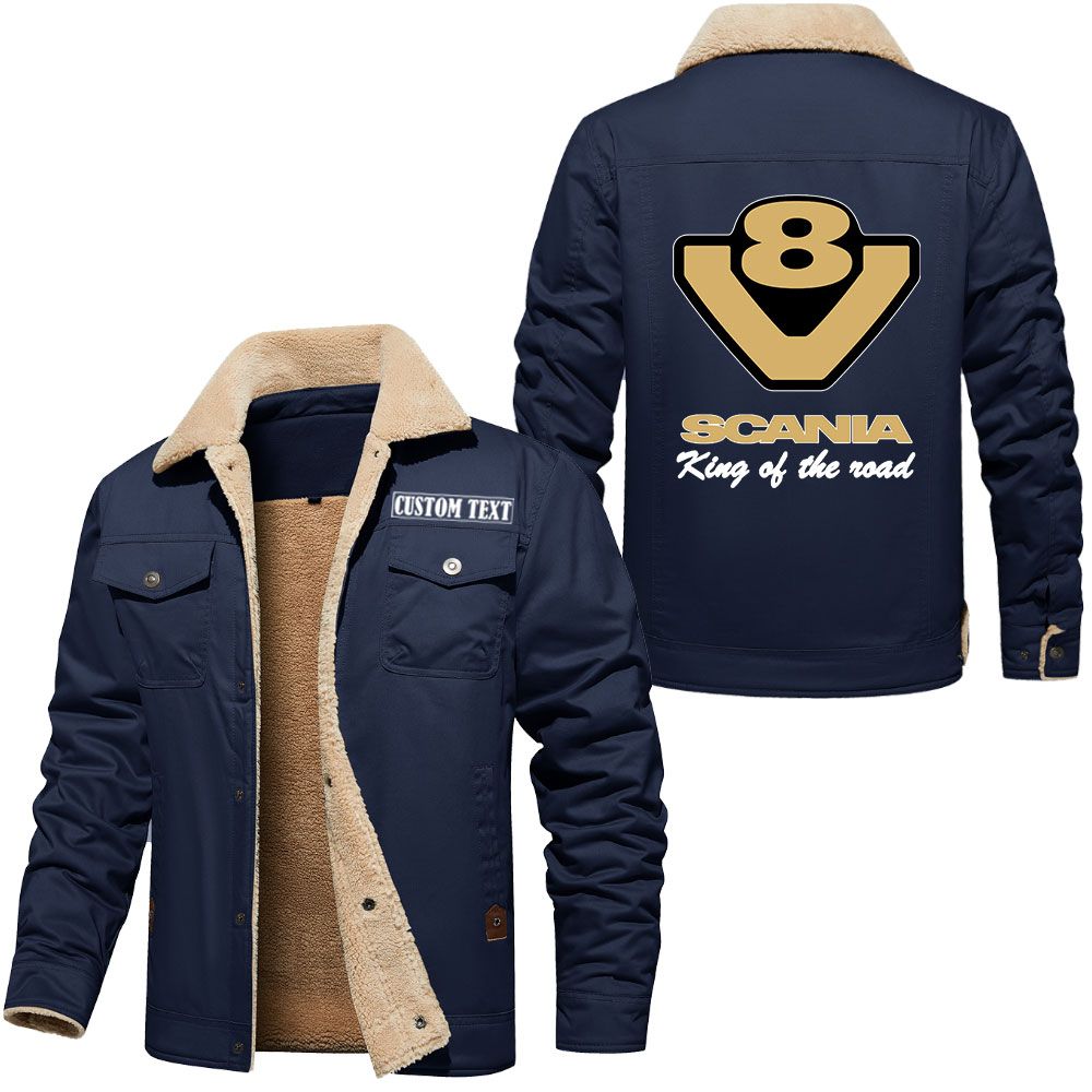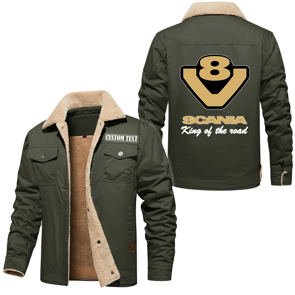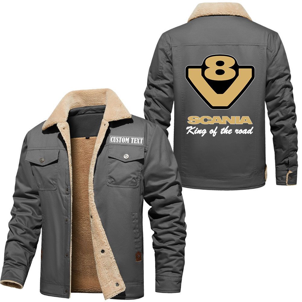 Scania V8 Logo Custom Name Cargo Fleece Lined Cotton Jacket Stylish Warm Personalized Outerwear