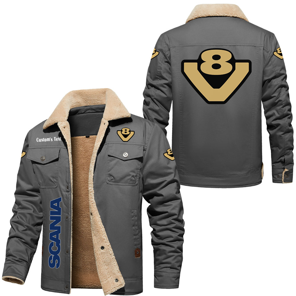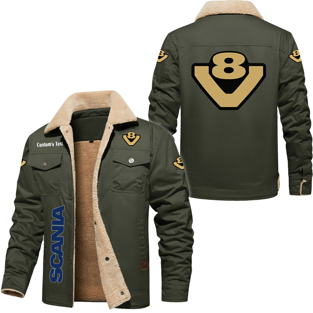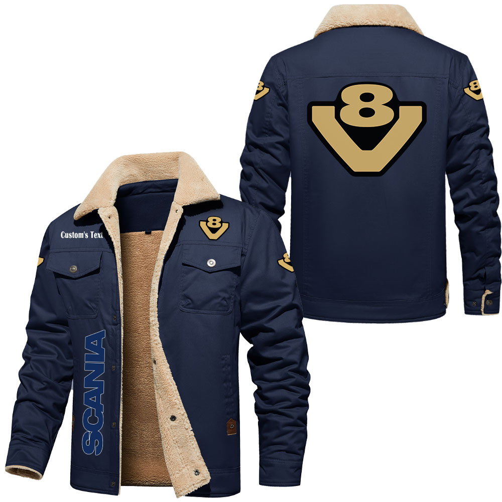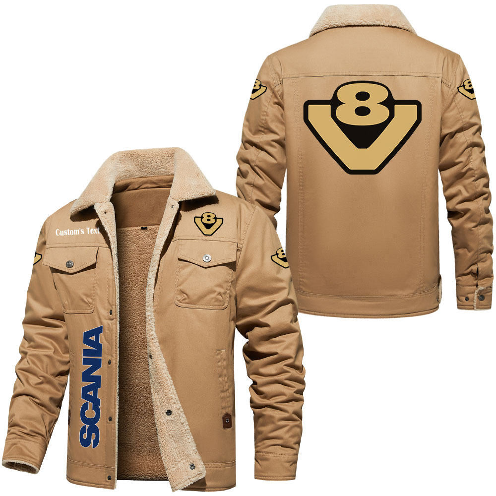 Scania V8 Logo Custom Text Cargo Fleece Lined Cotton Jacket