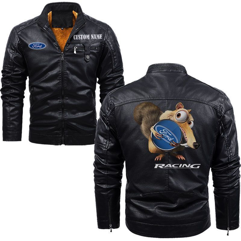 Scrat Squirrel In Ice Age Fiat Zip Pocket Fleece Leather Jacket