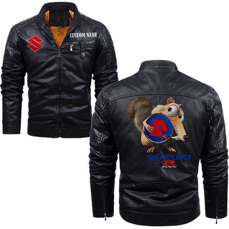 Scrat Squirrel In Ice Age Ford Motor Company Zip Pocket Fleece Leather Jacket