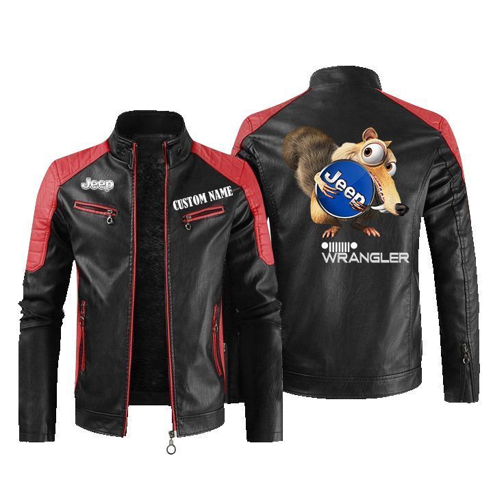 Scrat Squirrel In Ice Age Jeep wrangler Leather Biker Jacket