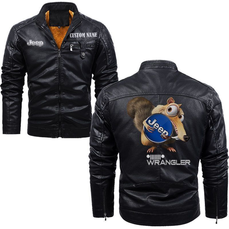 Scrat Squirrel In Ice Age Mercedes Benz Zip Pocket Fleece Leather Jacket