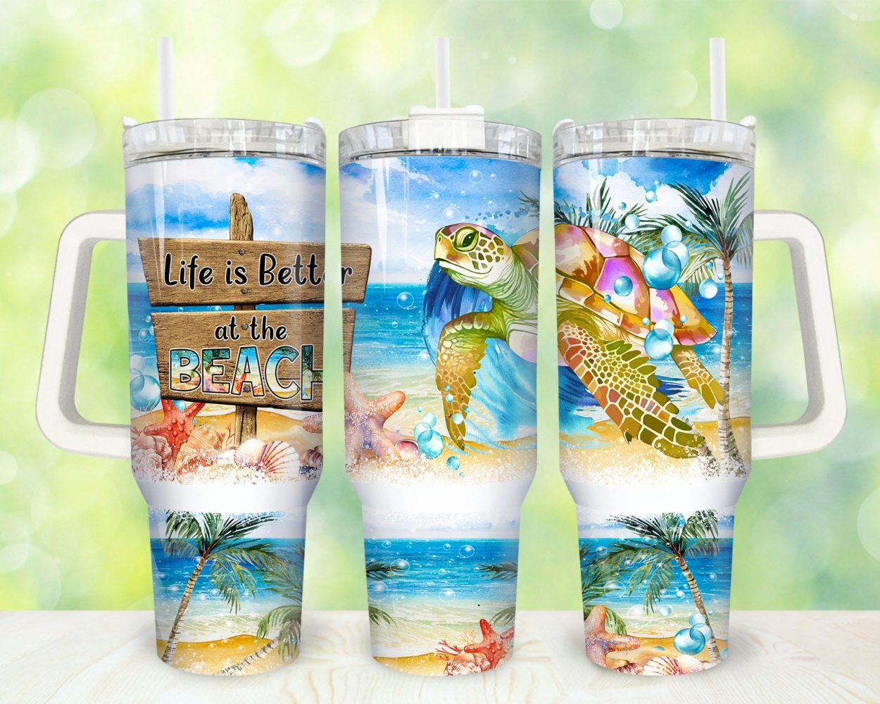 Sea Turtle Custom Stanley Quencher 40Oz Stainless Steel Tumbler With Handle