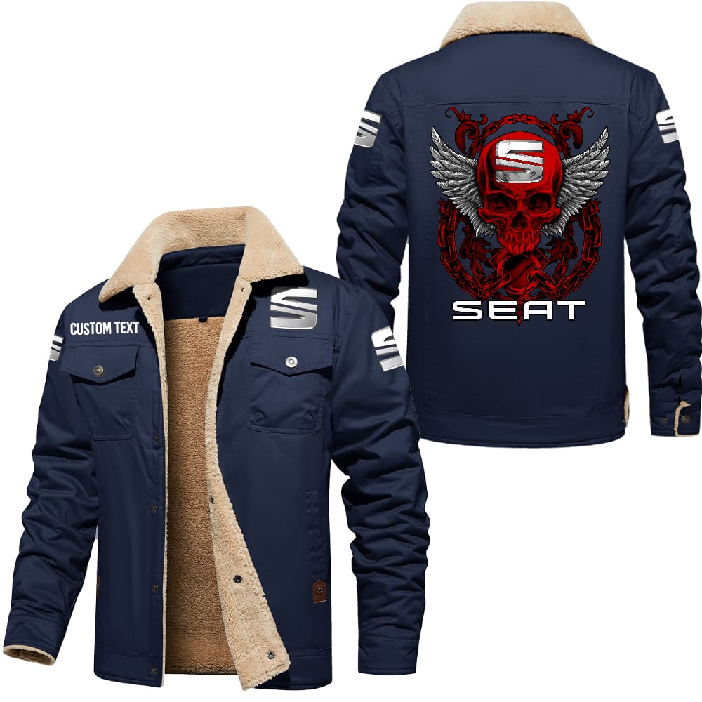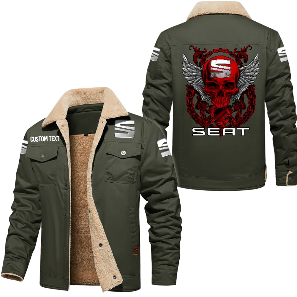 SEAT Custom Name Skull Design Cargo Fleece Lined Cotton Jacket