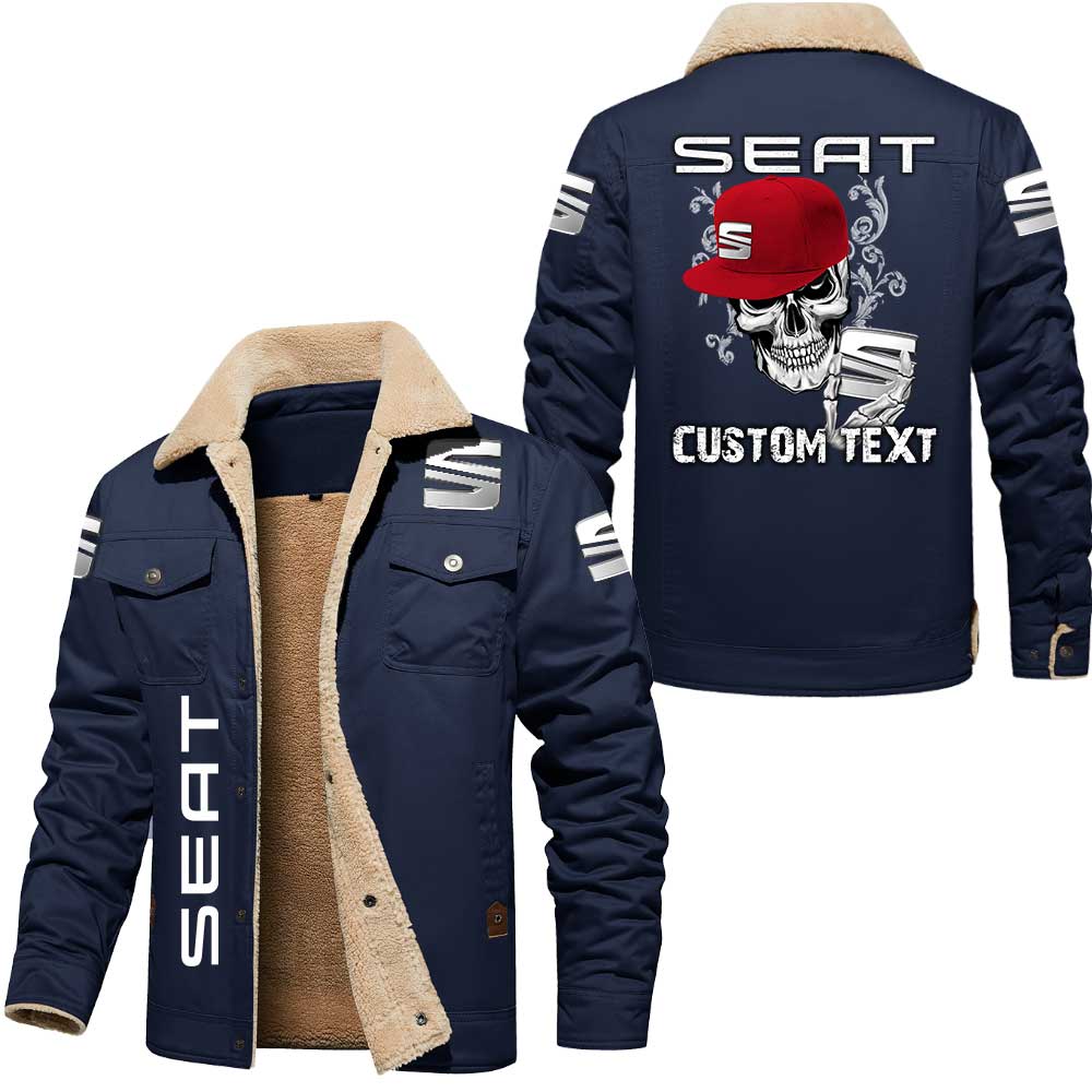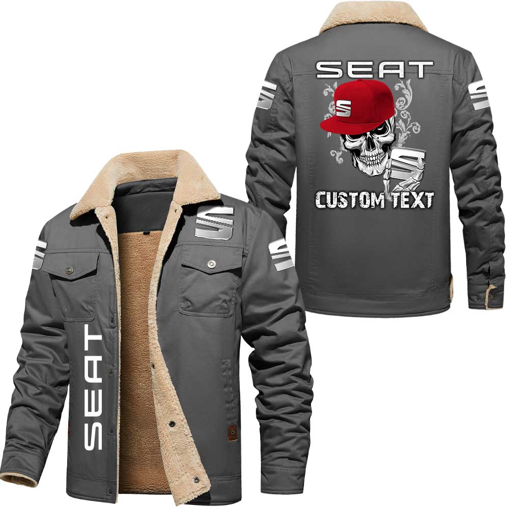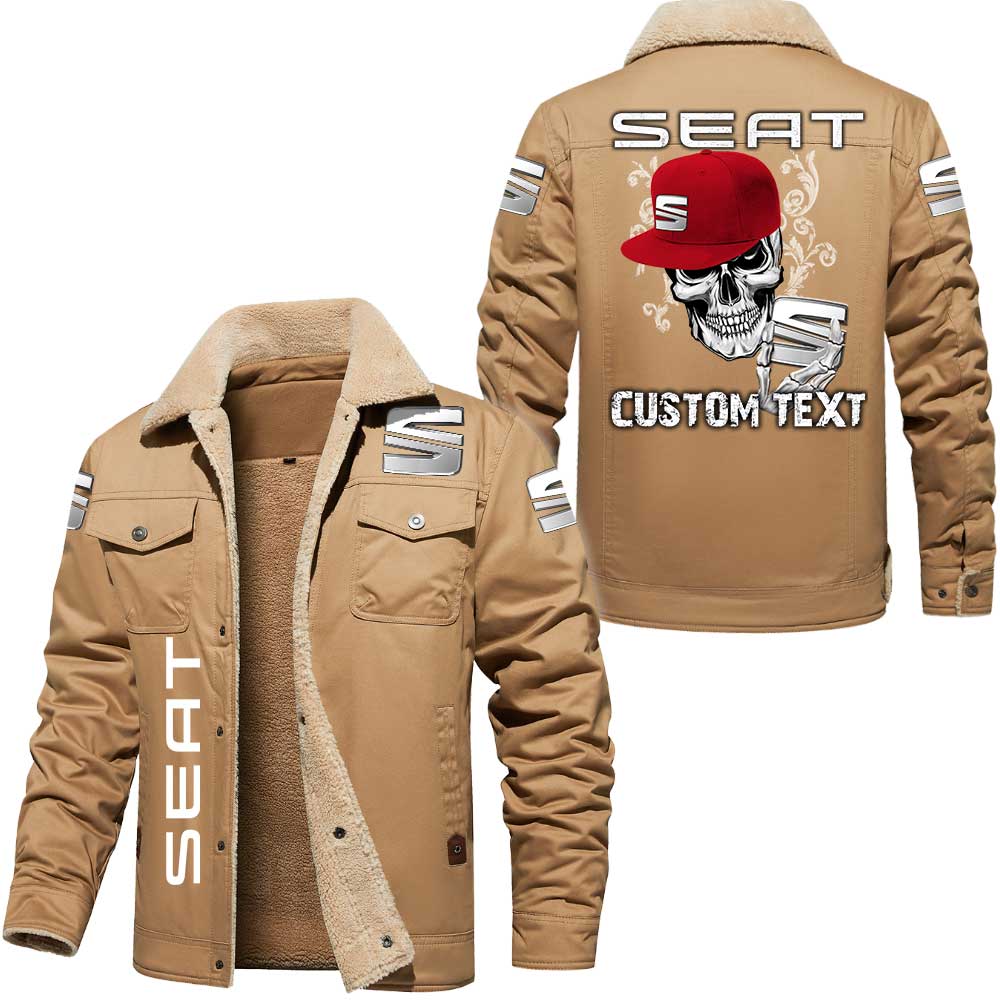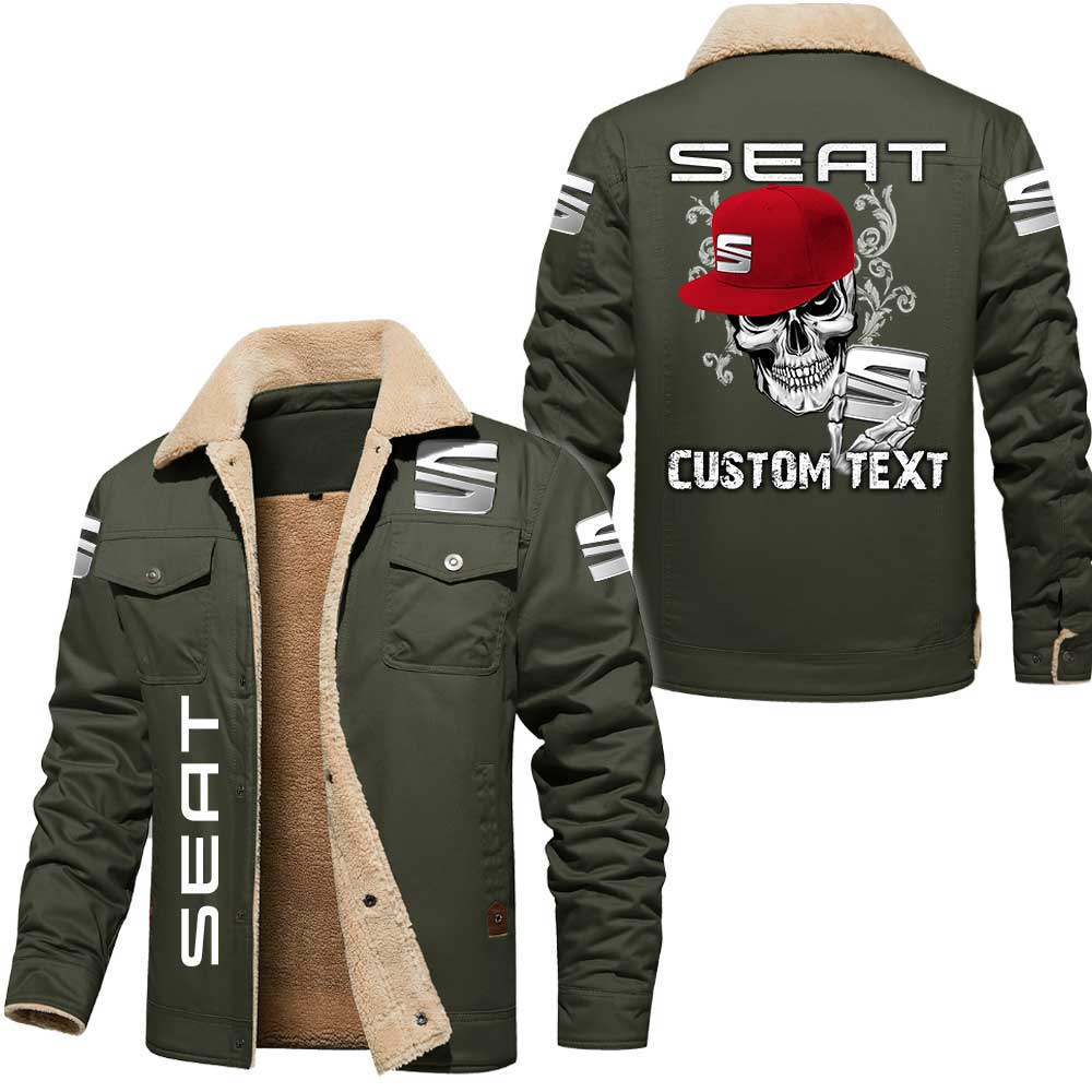 SEAT Skull Custom Name Cargo Fleece Lined Cotton Jacket