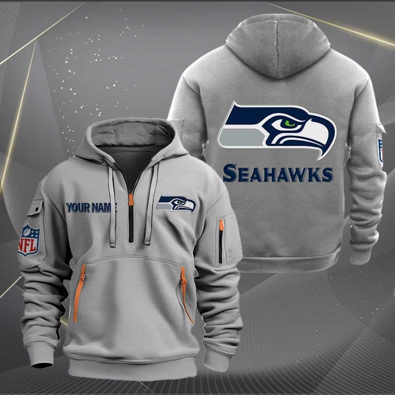 Seattle Seahawks Logo Quarter Zip Hoodie Custom Collection