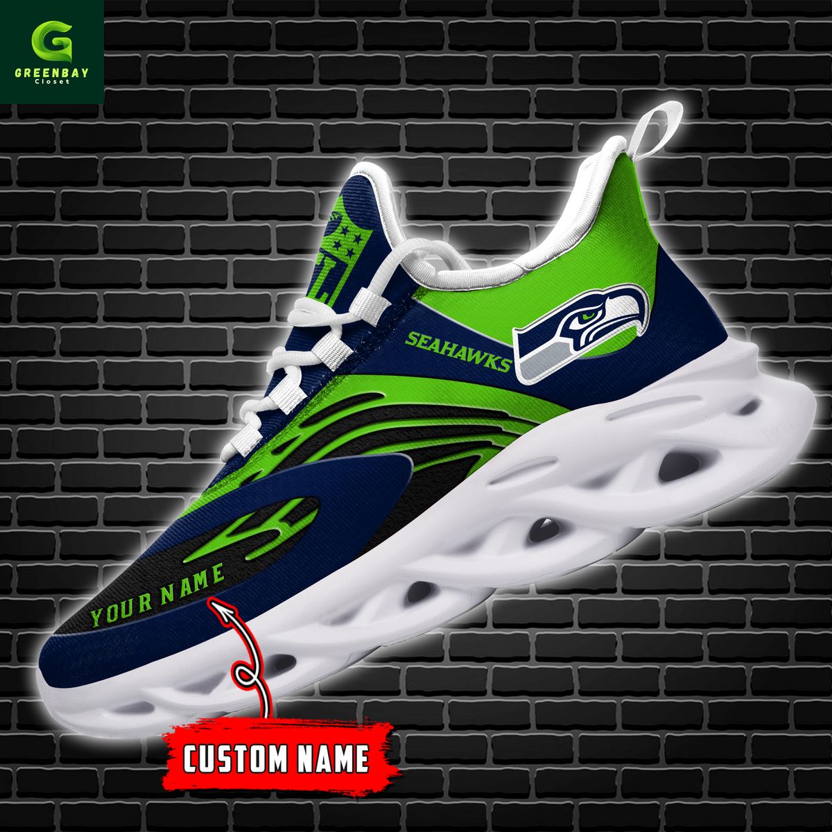 Seattle Seahawks Max Soul Shoes Sneakers Printed White And Black Sole For Men And Women