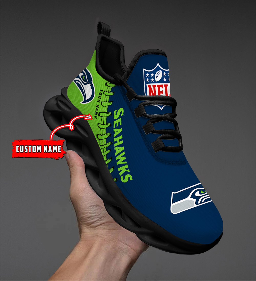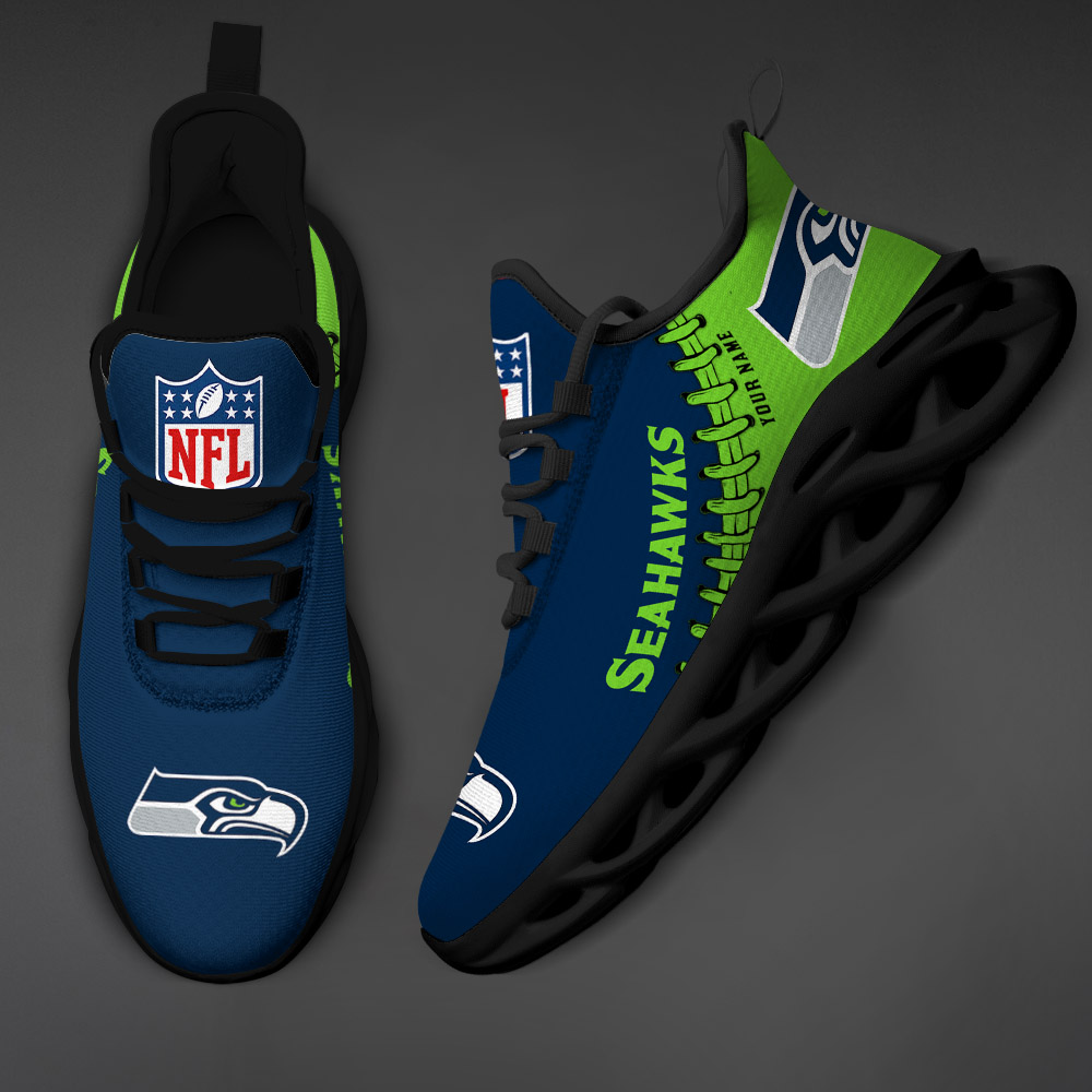 Seattle Seahawks Max Soul Shoes Sneakers Printed White And Black Sole For Men And Women