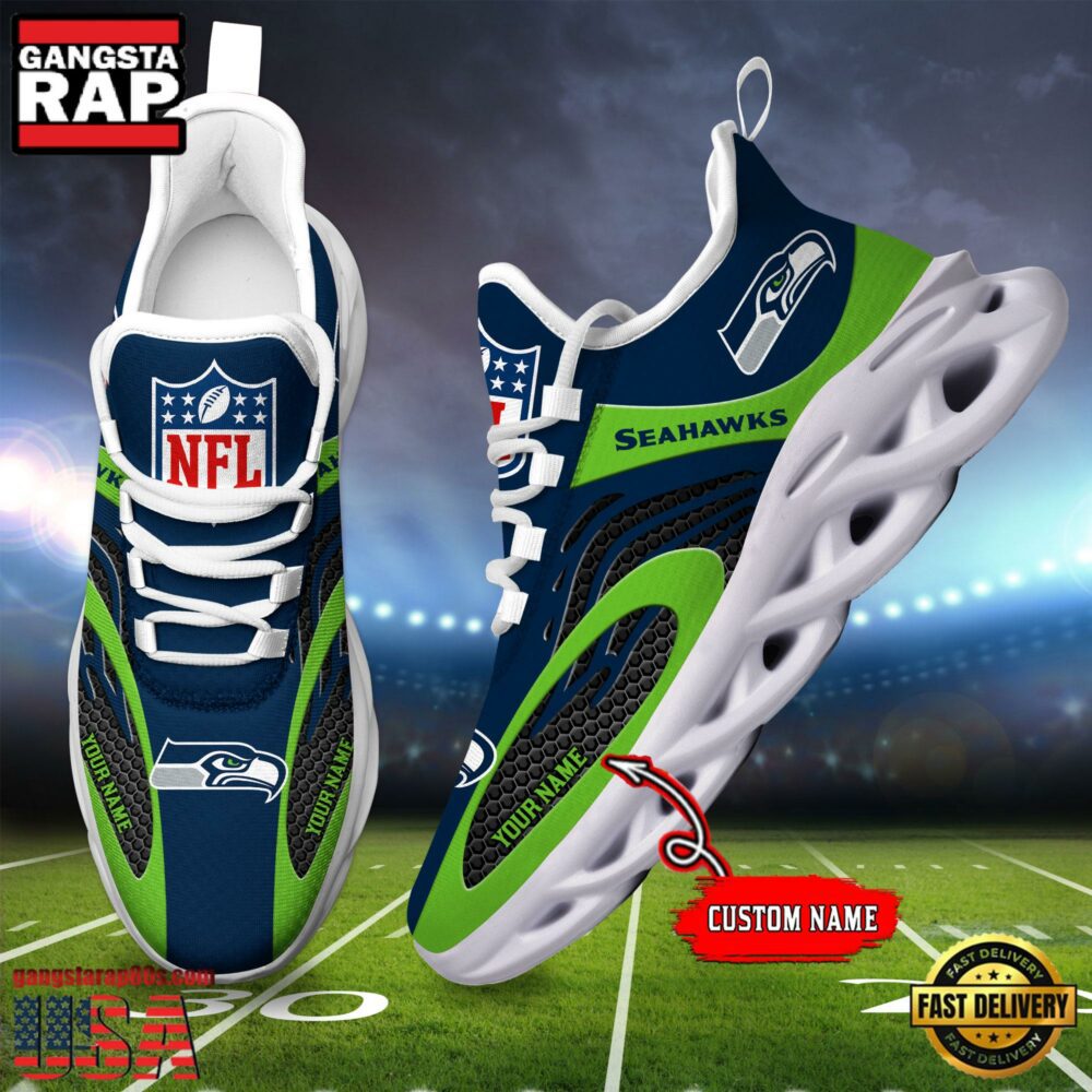 Seattle Seahawks Max Soul Shoes Sneakers Printed White And Black Sole For Men And Women