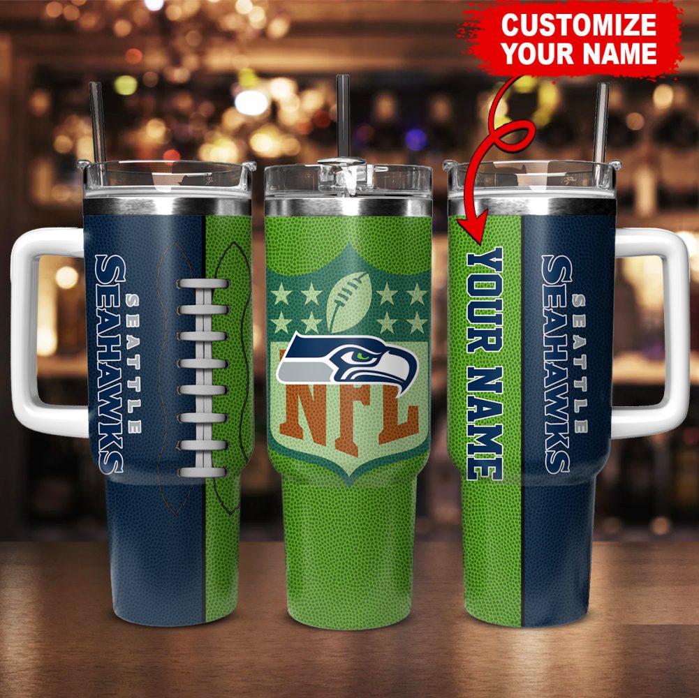 Seattle Seahawks Nfl Custom Stanley Quencher 40Oz Stainless Steel Tumbler With Handle