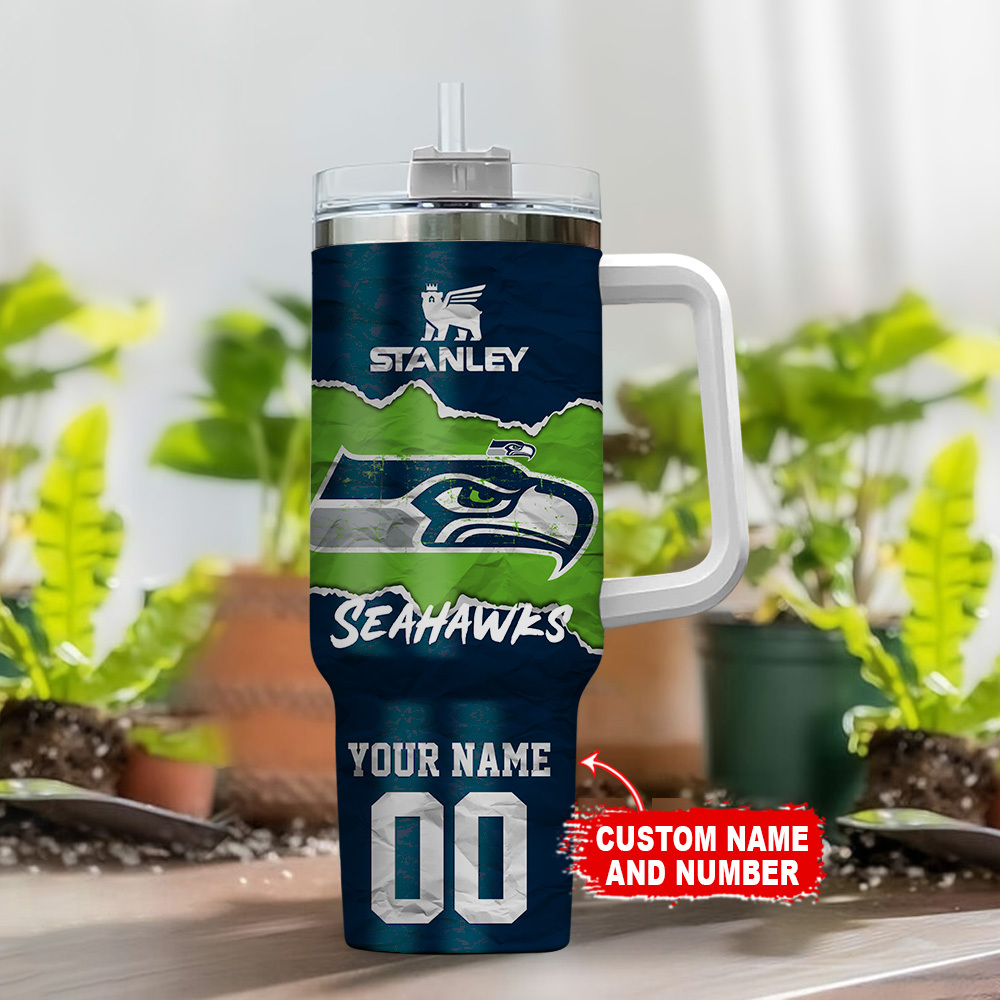 Seattle Seahawks Nfl Custom Stanley Quencher 40Oz Stainless Steel Tumbler With Handle