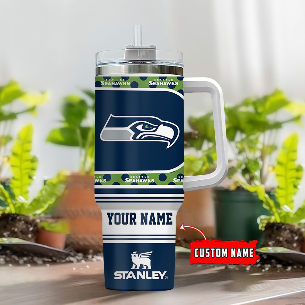 Seattle Seahawks Nfl Custom Stanley Quencher 40Oz Stainless Steel Tumbler With Handle