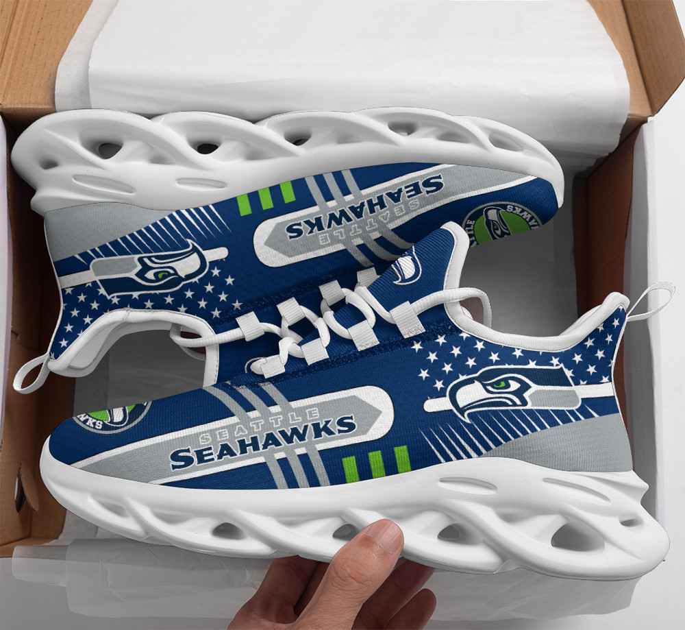Seattle Seahawks NFL Max Soul Shoes Sneakers Printed White And Black Sole For Men And Women