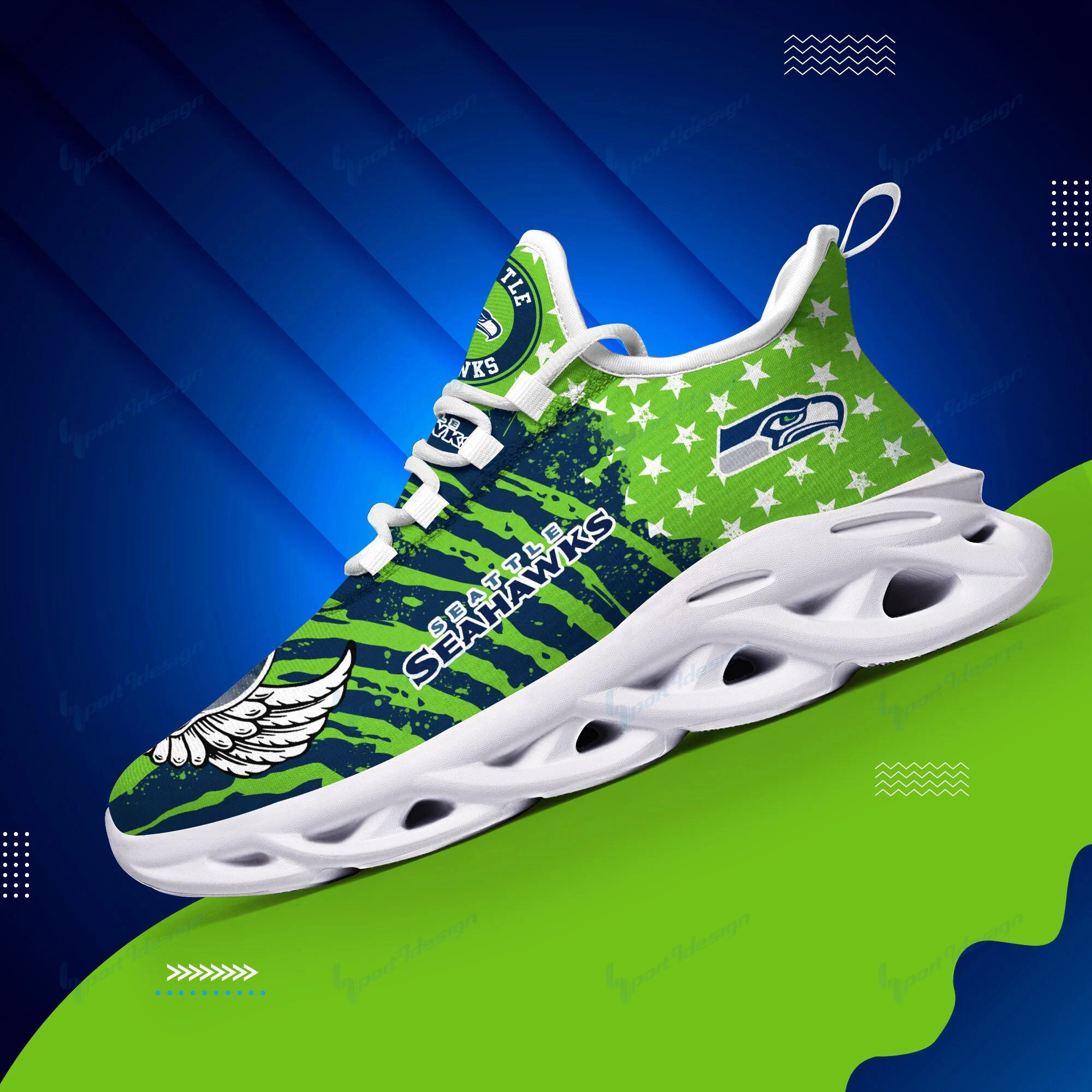 Seattle Seahawks NFL Max Soul Shoes Sneakers Printed White And Black Sole For Men And Women