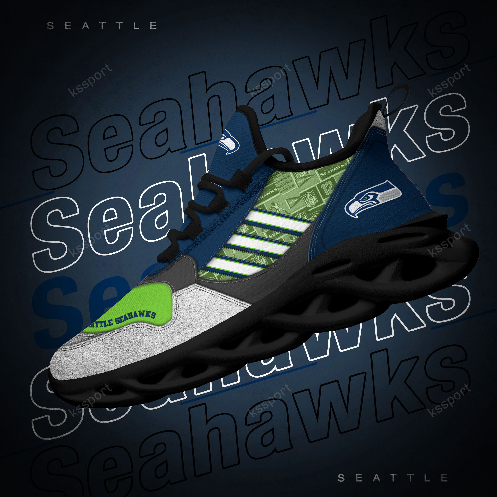 Seattle Seahawks NFL Max Soul Shoes Sneakers Printed White And Black Sole For Men And Women
