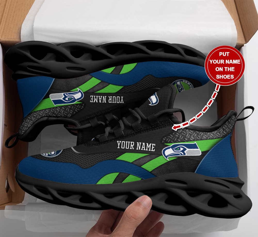 Seattle Seahawks NFL Max Soul Shoes Sneakers Printed White And Black Sole For Men And Women