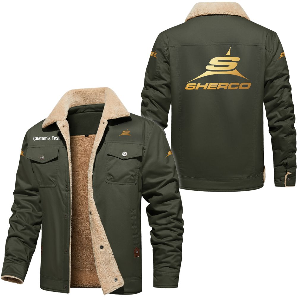 Sherco Golden Logo Custom Cargo Fleece Lined Cotton Jacket Army Green