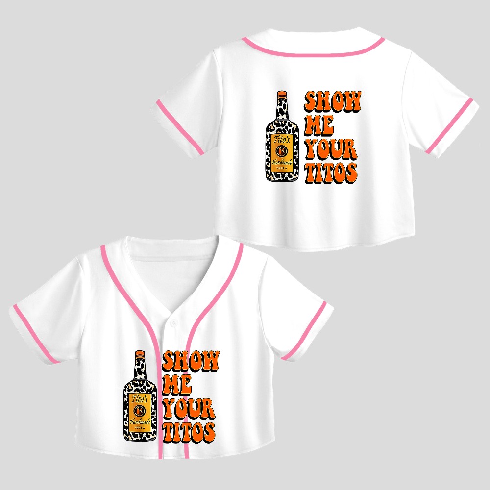 Show Me Your Tito’S Drinking Vodka Alcohol Lover Crop Top Baseball Jersey