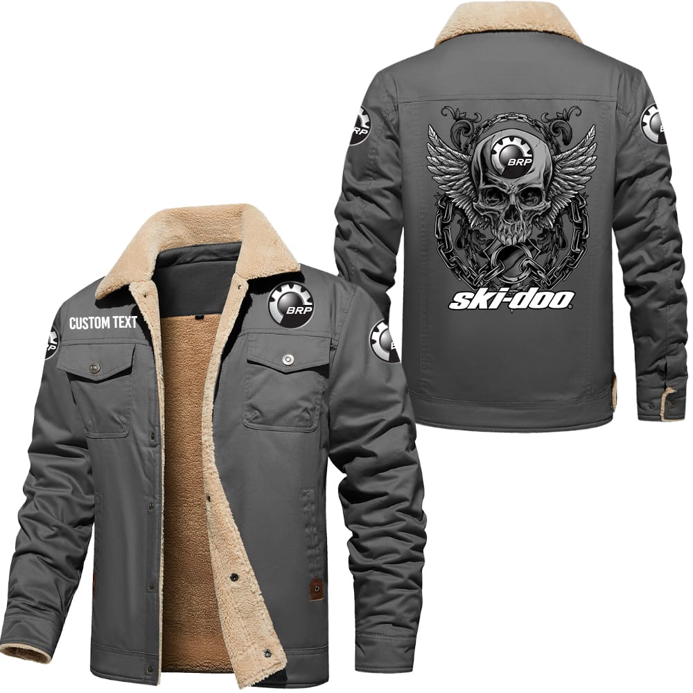 Ski Doo Custom Name Skull Design Cargo Fleece Lined Cotton Jacket