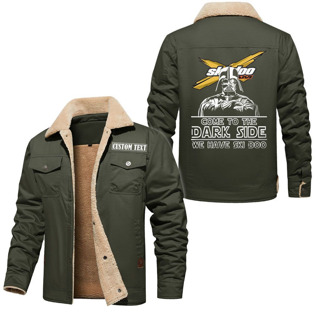 Ski Doo Logo Custom Name Cargo Fleece Lined Cotton Jacket Personalized Outerwear with Dark Side Star Wars Design
