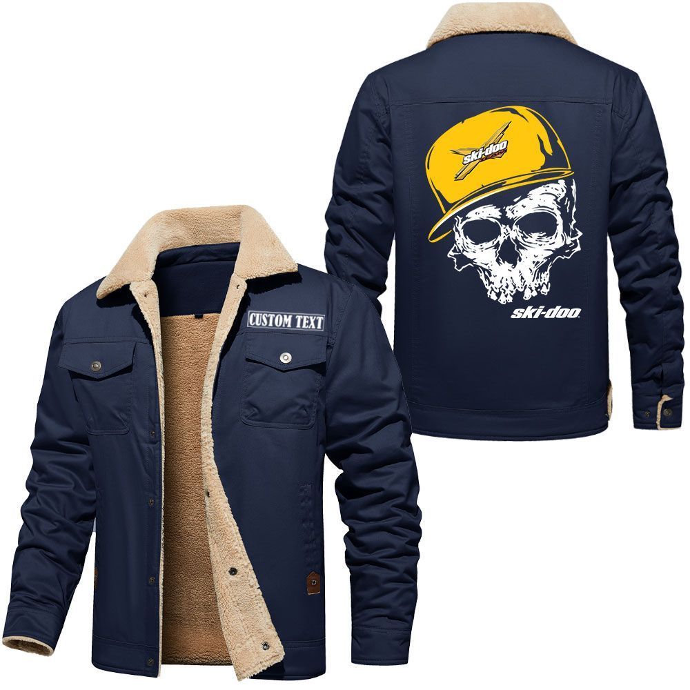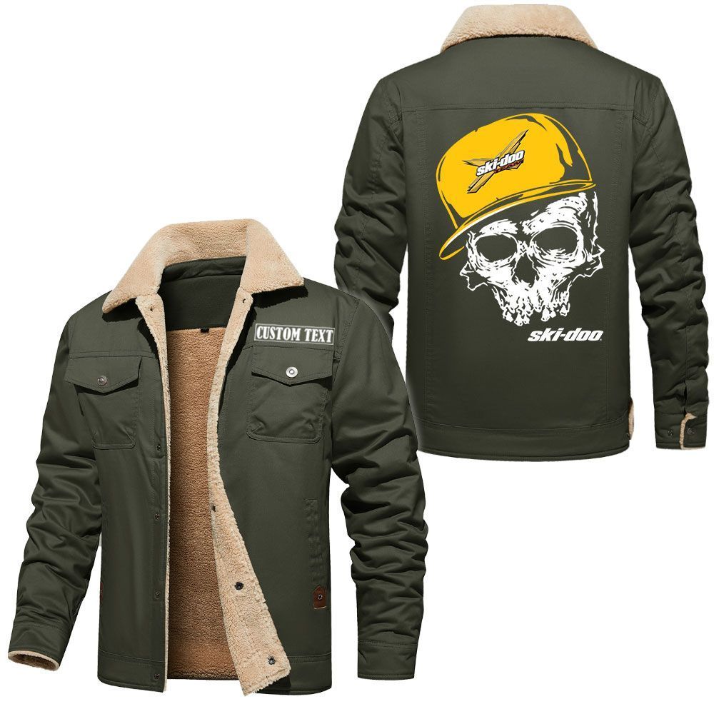 Ski Doo Logo Custom Name Cargo Fleece Lined Cotton Jacket Personalized Outerwear with Skull Design