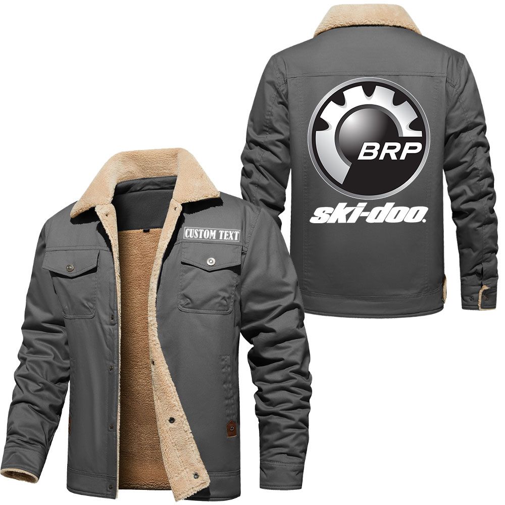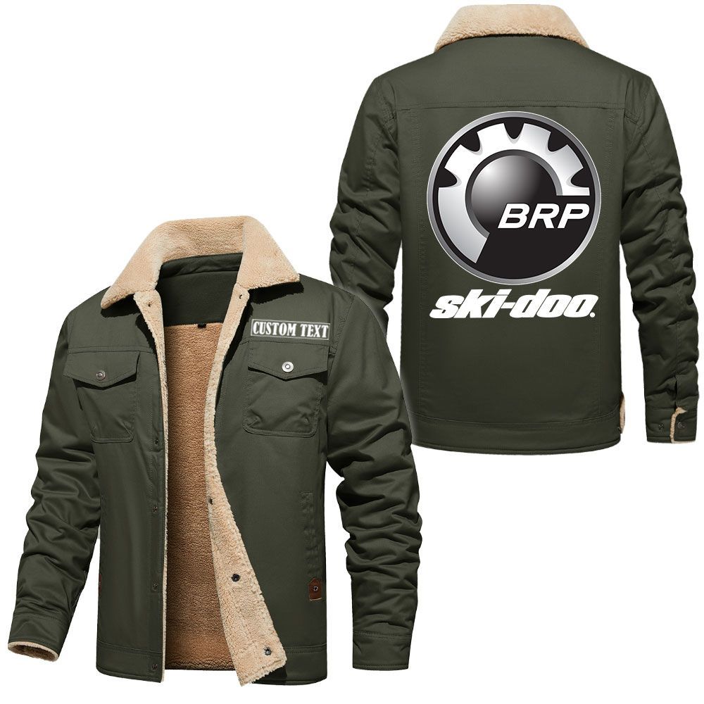 Ski Doo Logo Custom Name Cargo Fleece Lined Cotton Jacket Stylish Warm Personalized Outerwear