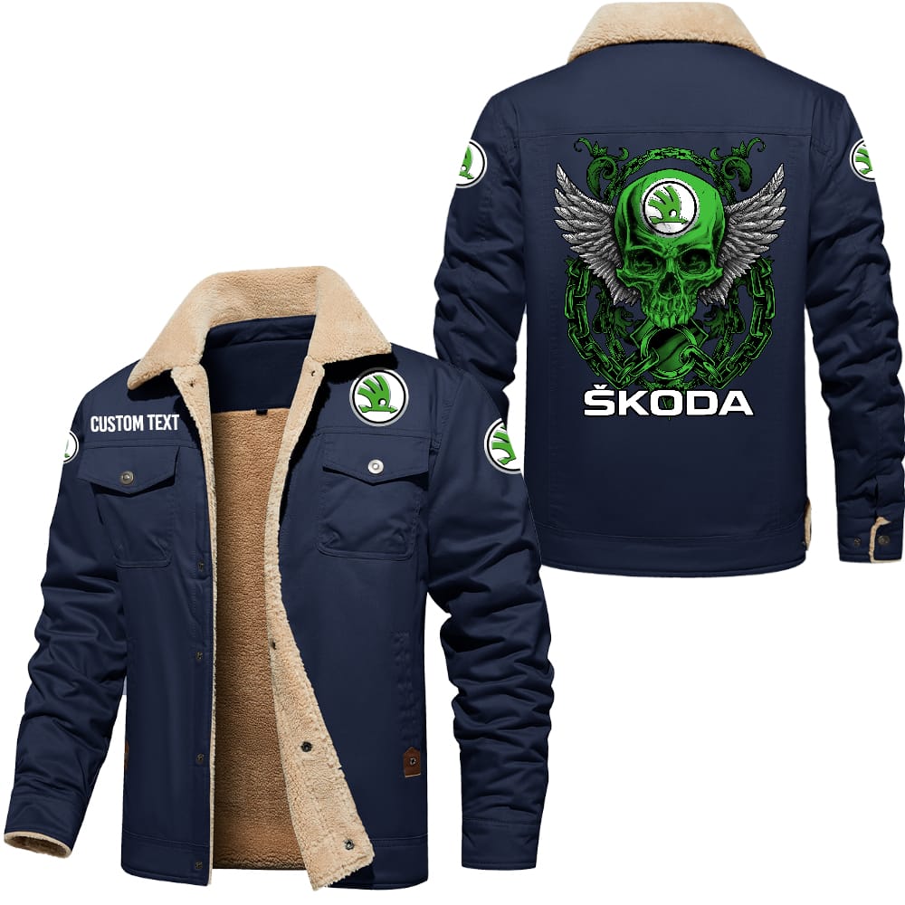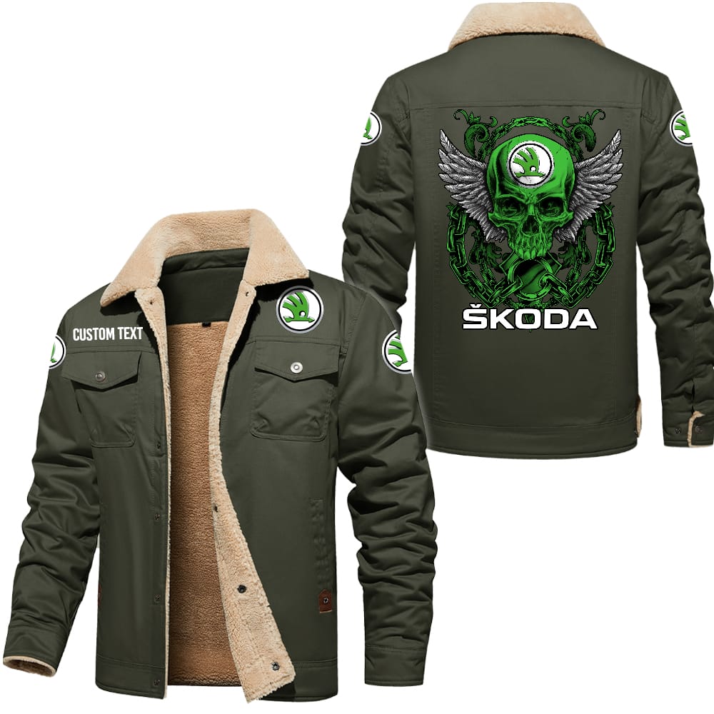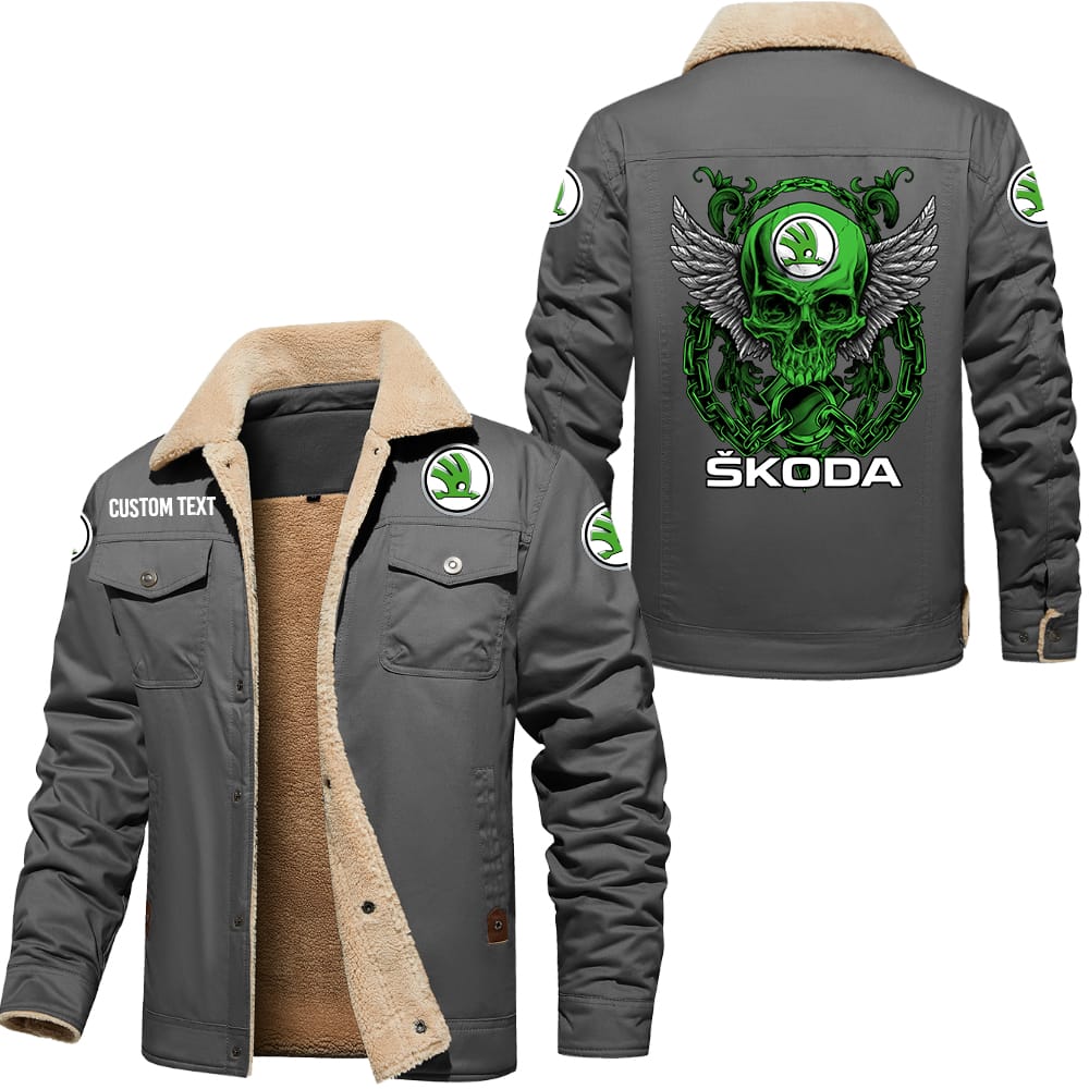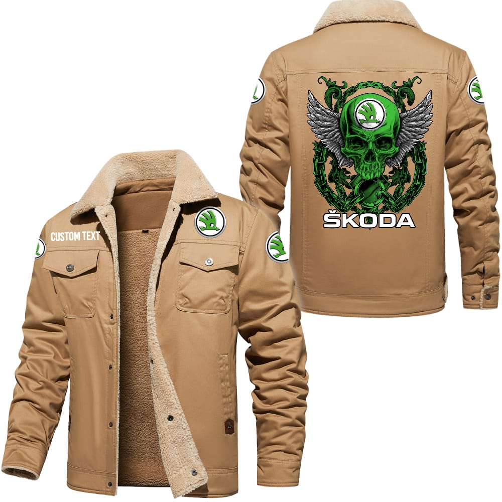 Skoda Custom Name Skull Design Cargo Fleece Lined Cotton Jacket