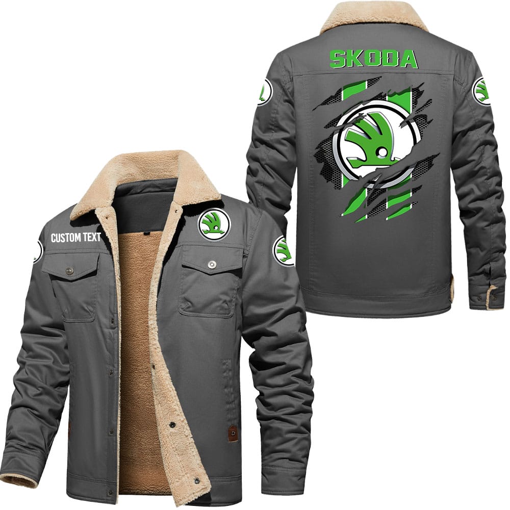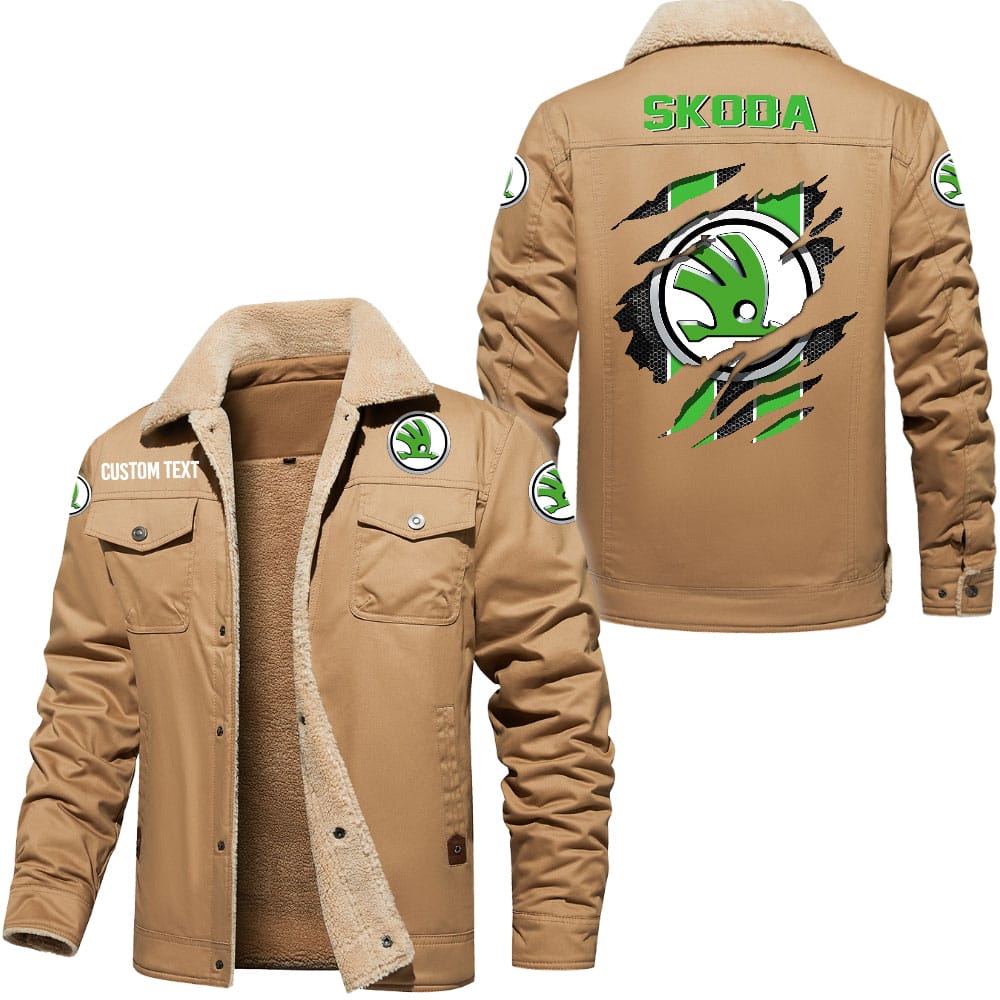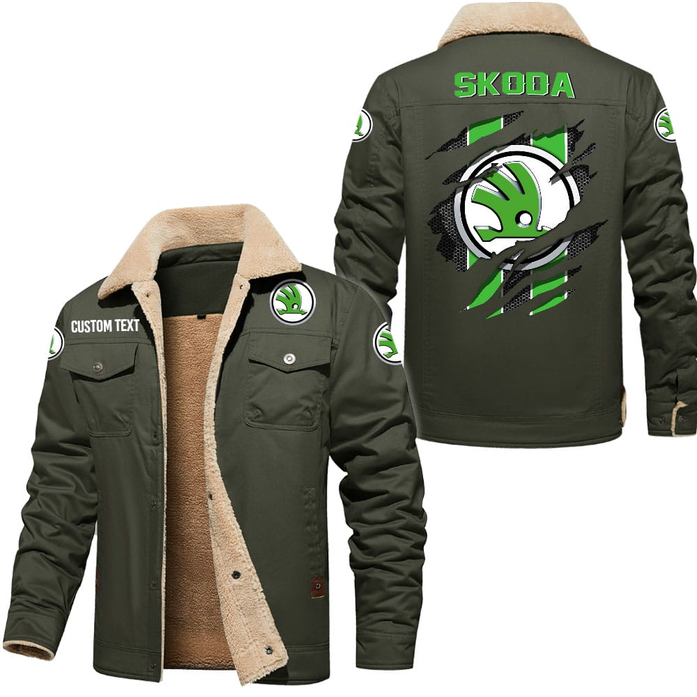 Skoda Logo Custom Name Cargo Fleece Lined Cotton Jacket