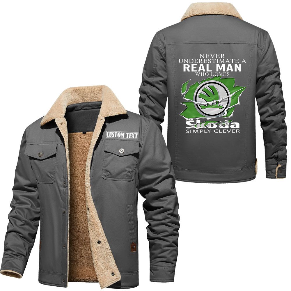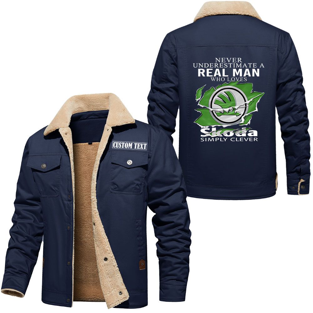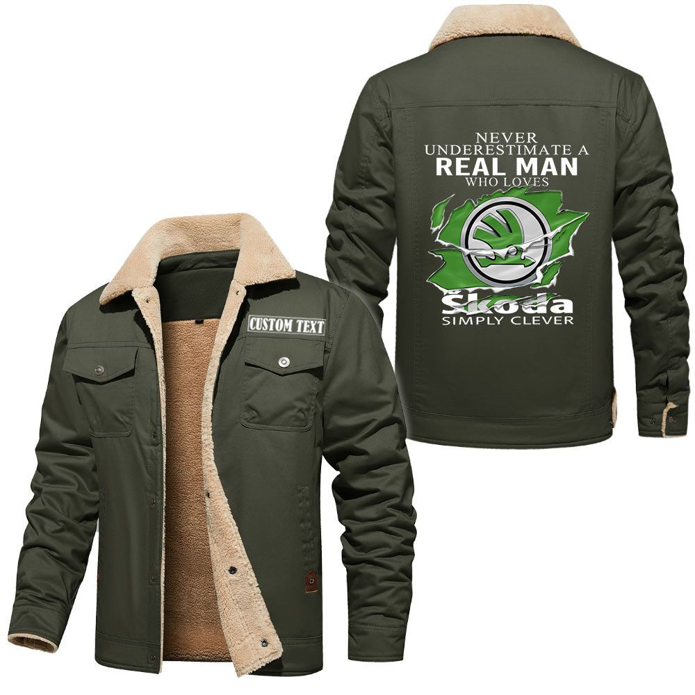 Skoda Logo Custom Name Cargo Fleece Lined Cotton Jacket A Real Man Who Loves Personalized Outerwear