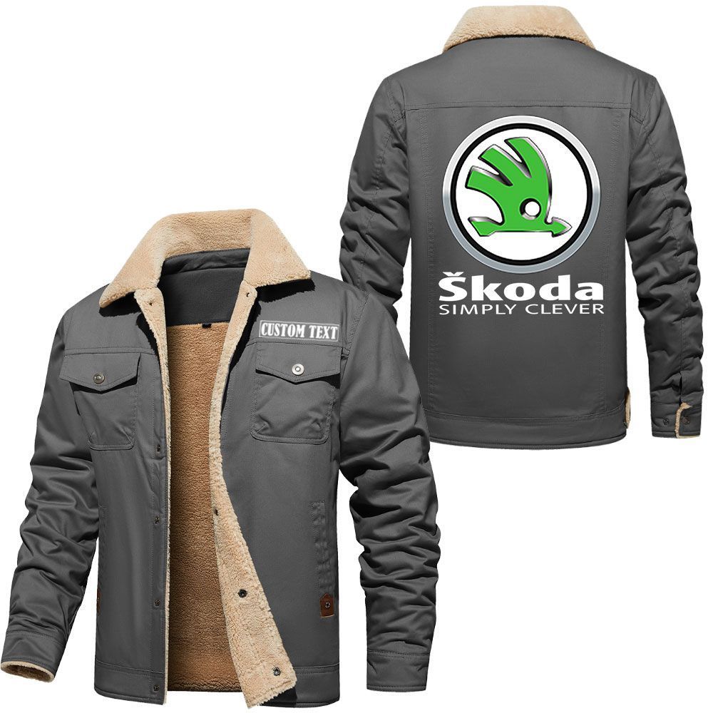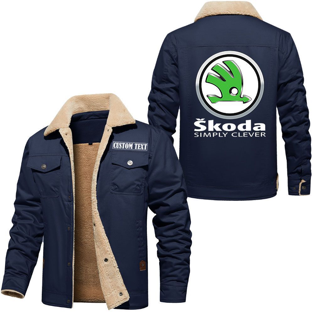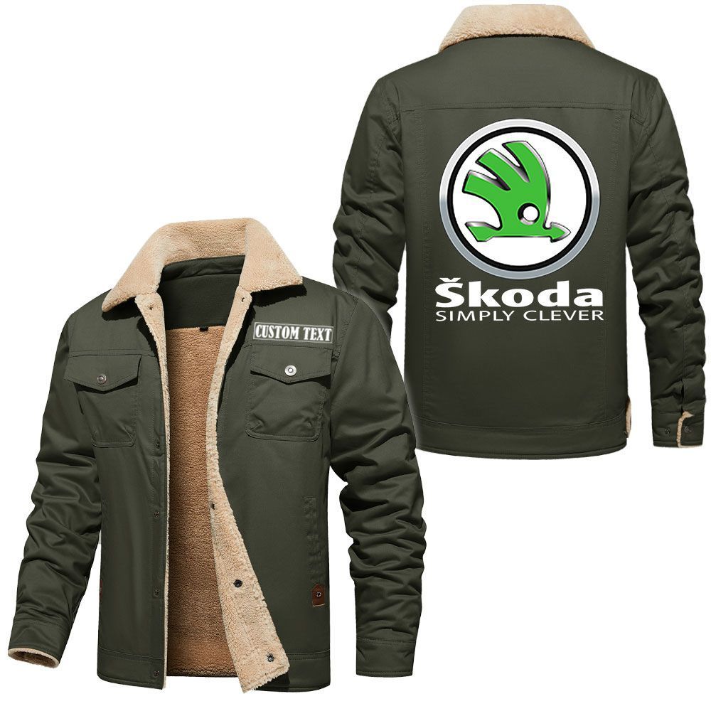 Skoda Logo Custom Name Cargo Fleece Lined Cotton Jacket Stylish Warm Personalized Outerwear