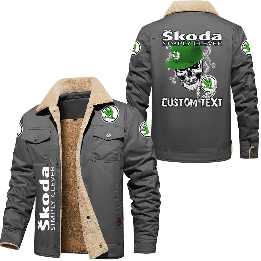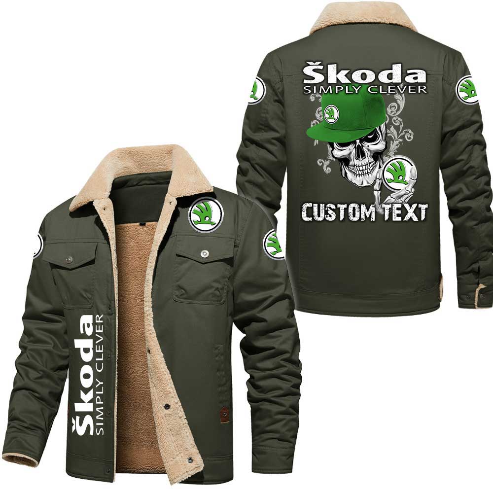 Skoda Simply Clever Skull Custom Name Cargo Fleece Lined Cotton Jacket