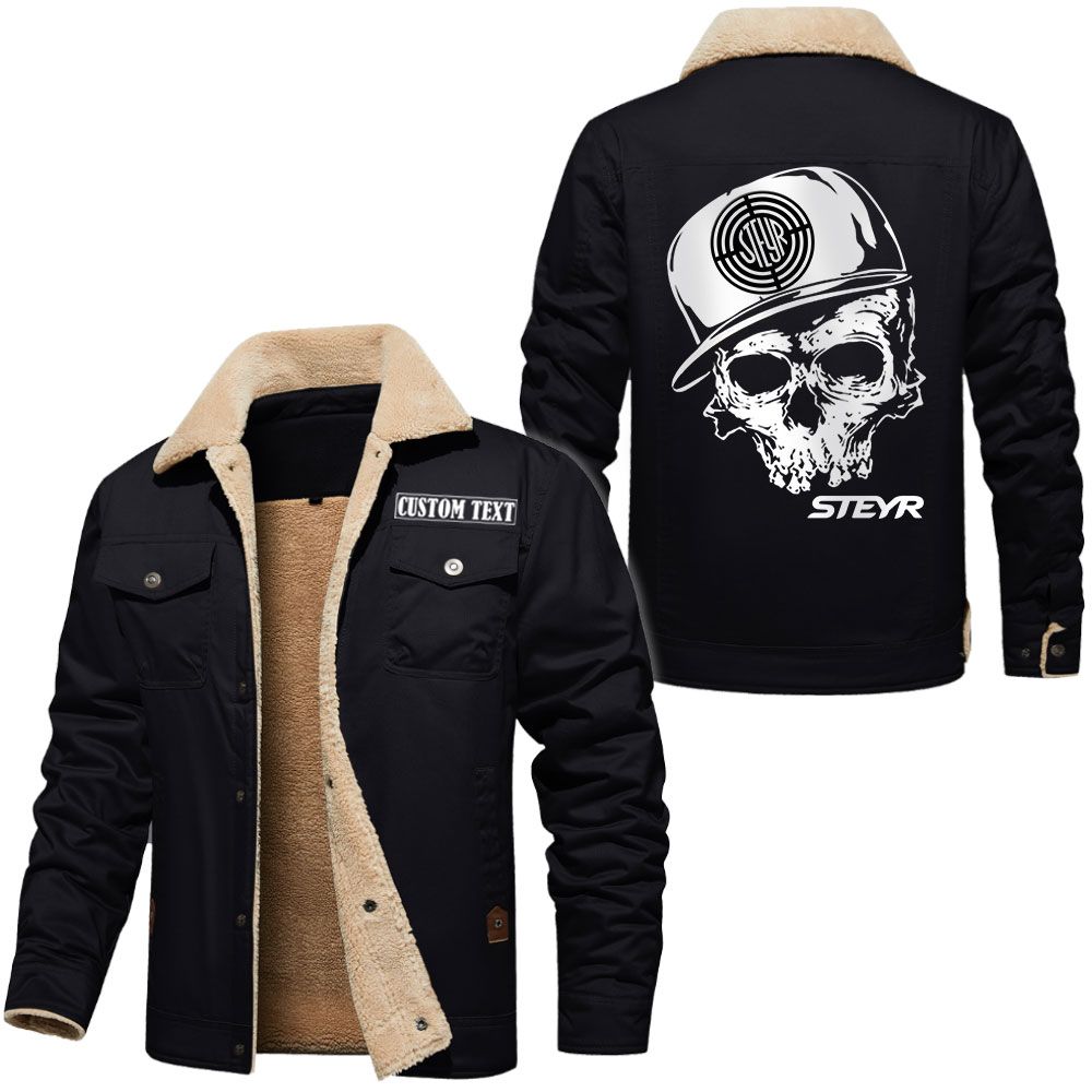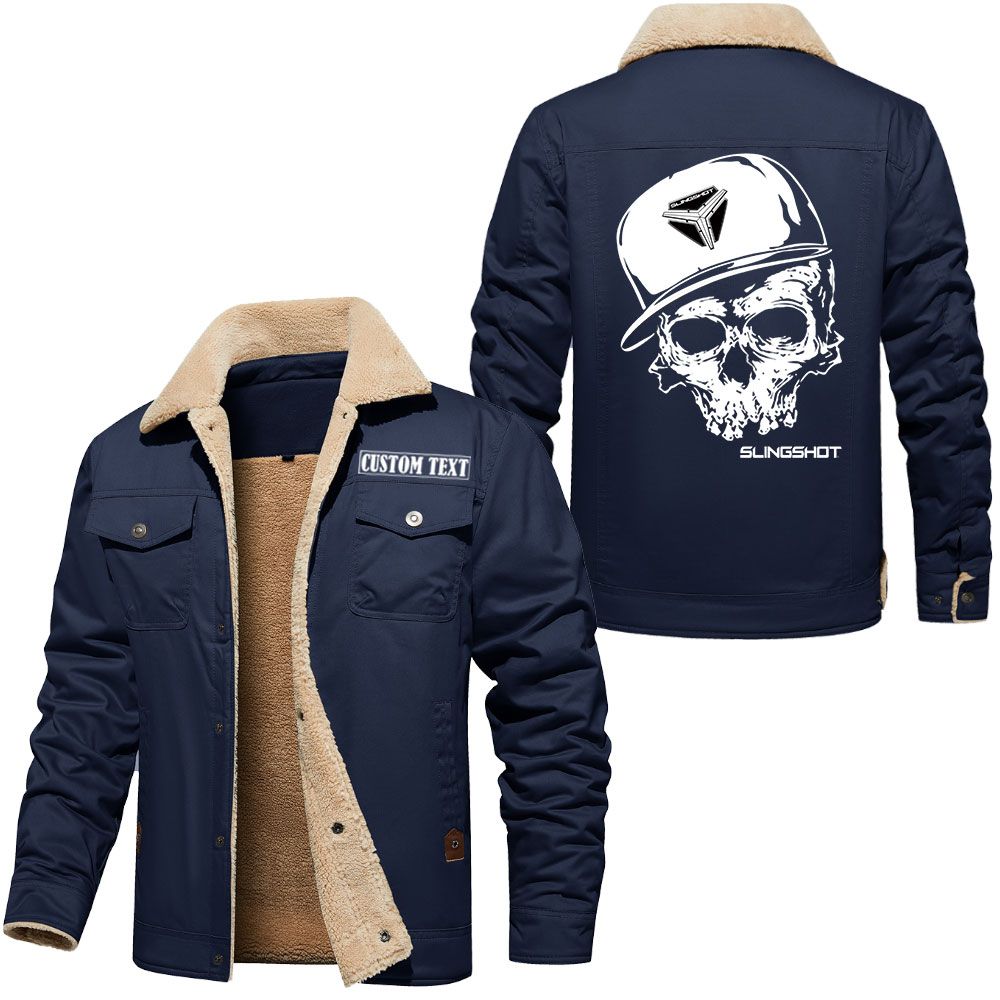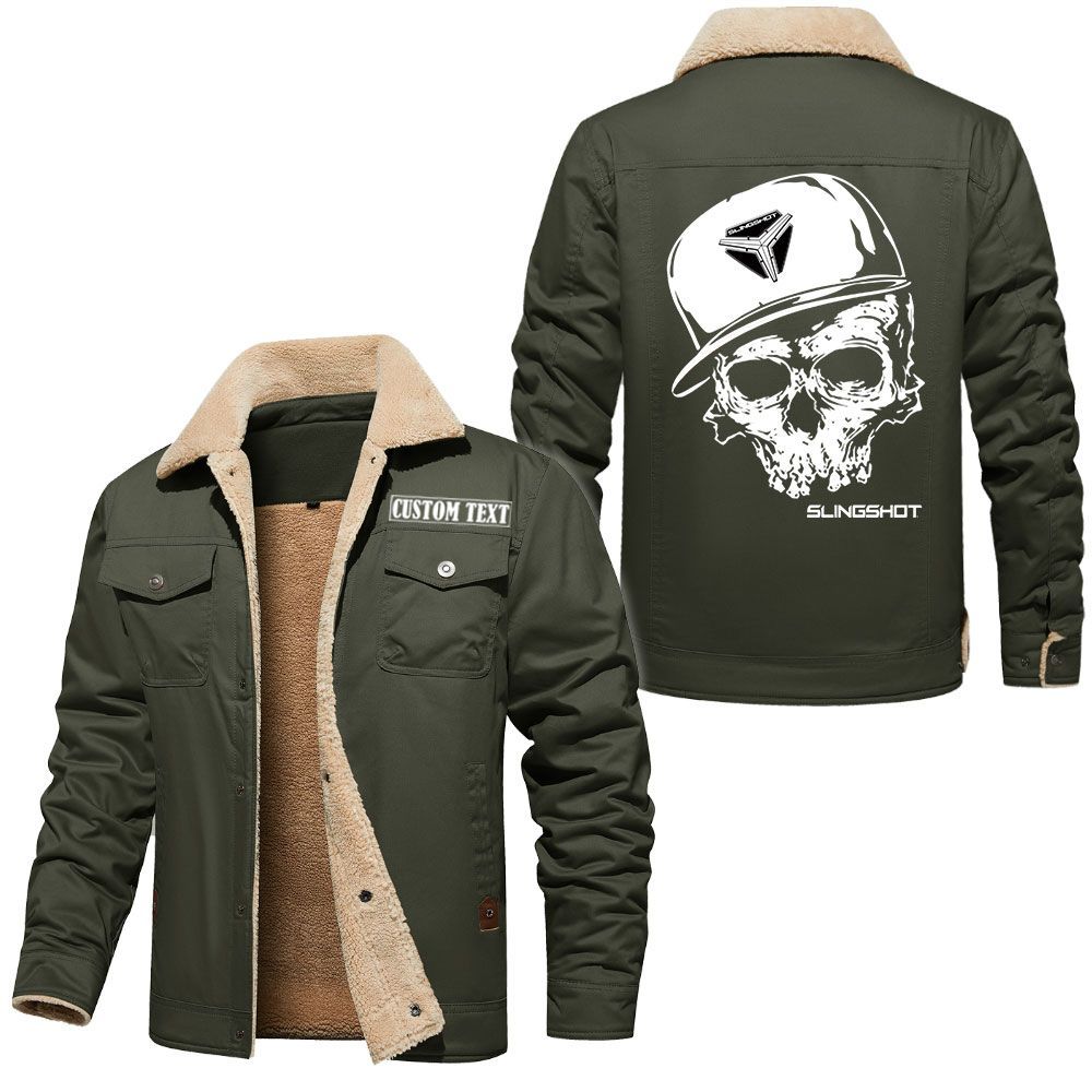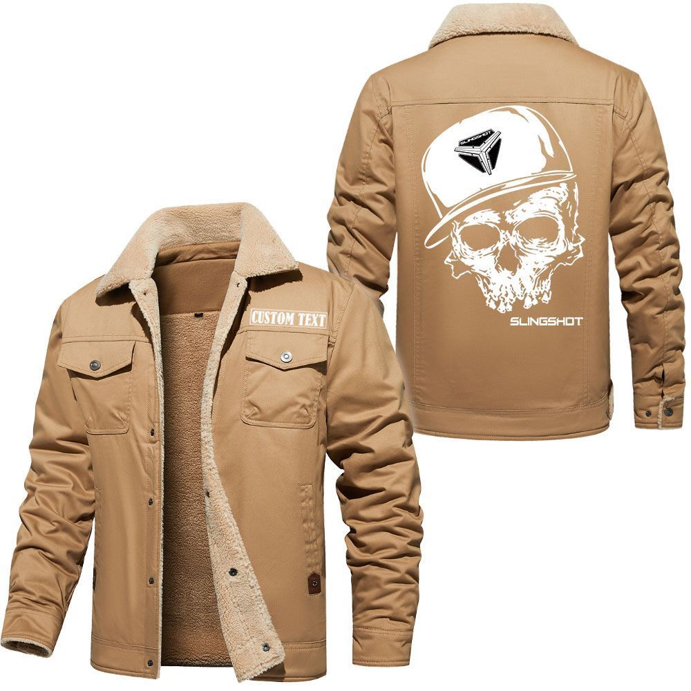 Slingshort Logo Custom Name Cargo Fleece Lined Cotton Jacket Personalized Outerwear with Skull Design