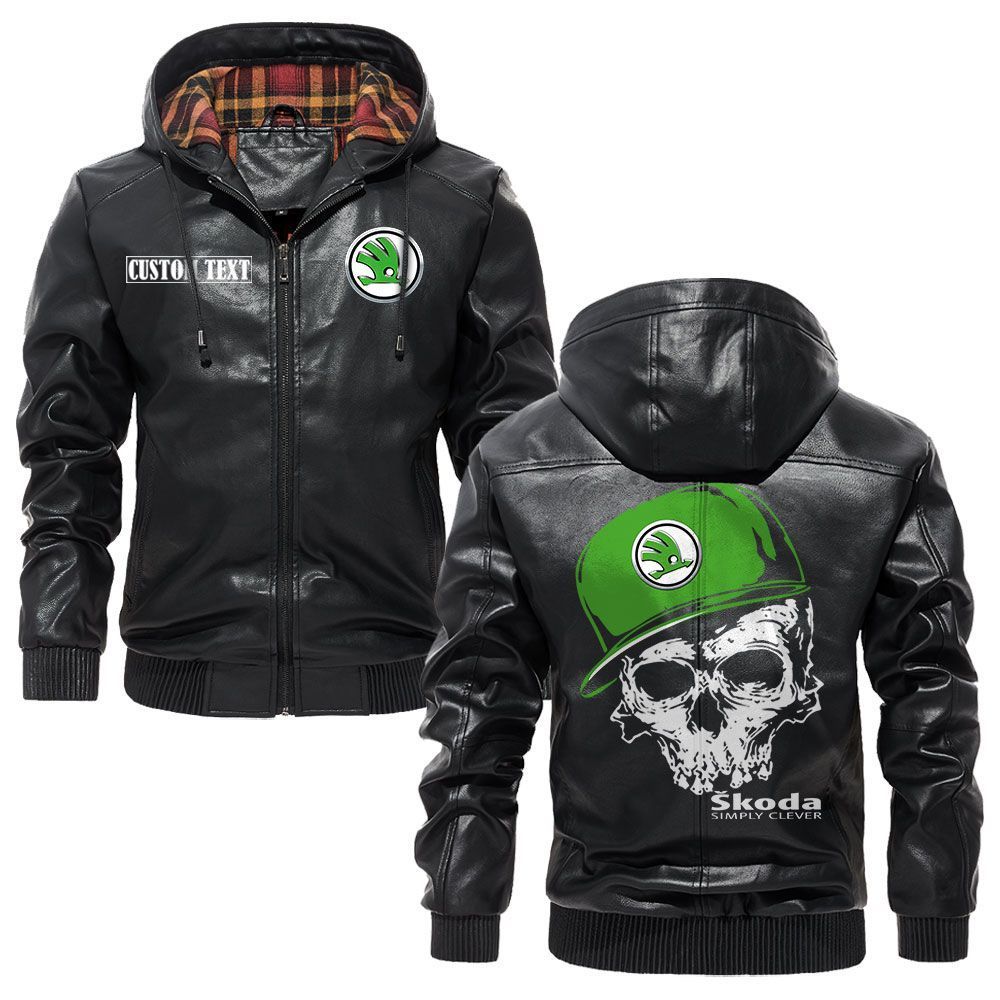 Slingshort Logo Custom Name Leather Hoodie Jacket Warm Outerwear with Skull Design