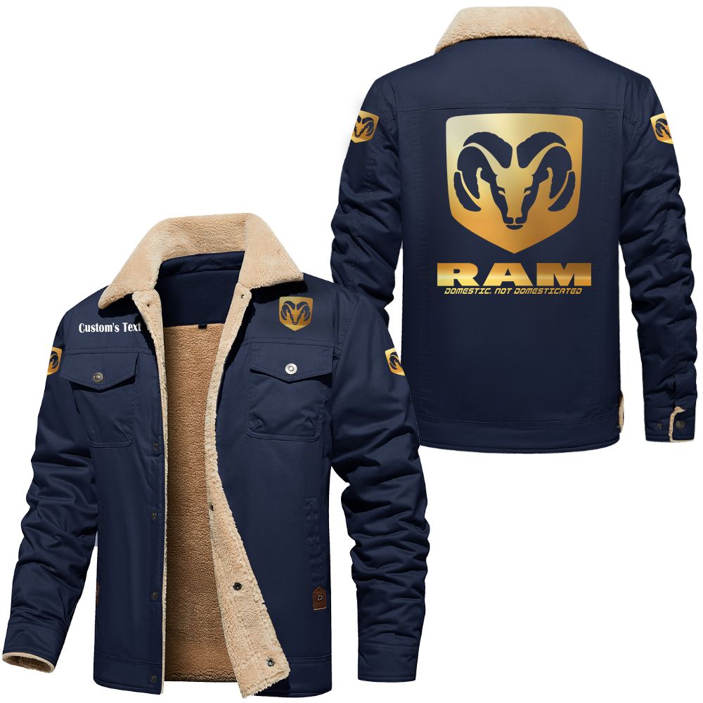 Smart Golden Logo Custom Cargo Fleece Lined Cotton Jacket Royal Blue