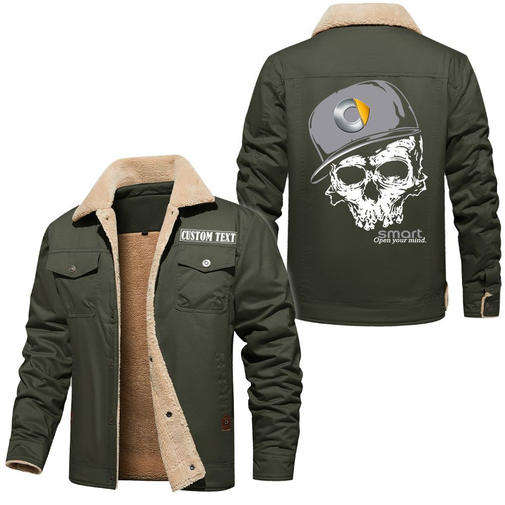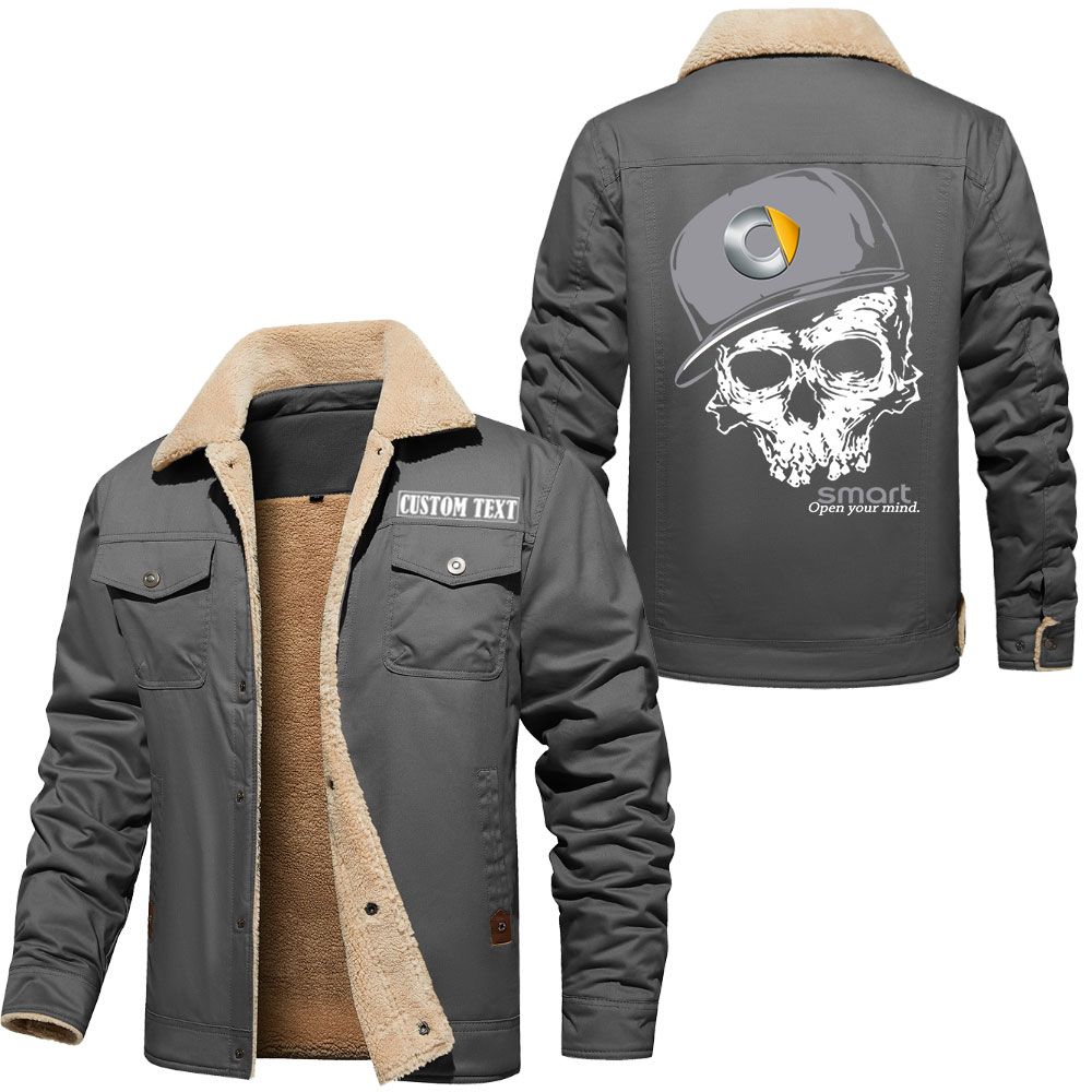 Smart Logo Custom Name Cargo Fleece Lined Cotton Jacket Personalized Outerwear with Skull Design