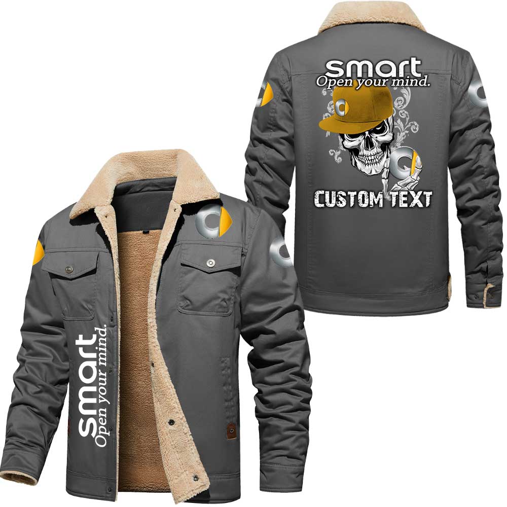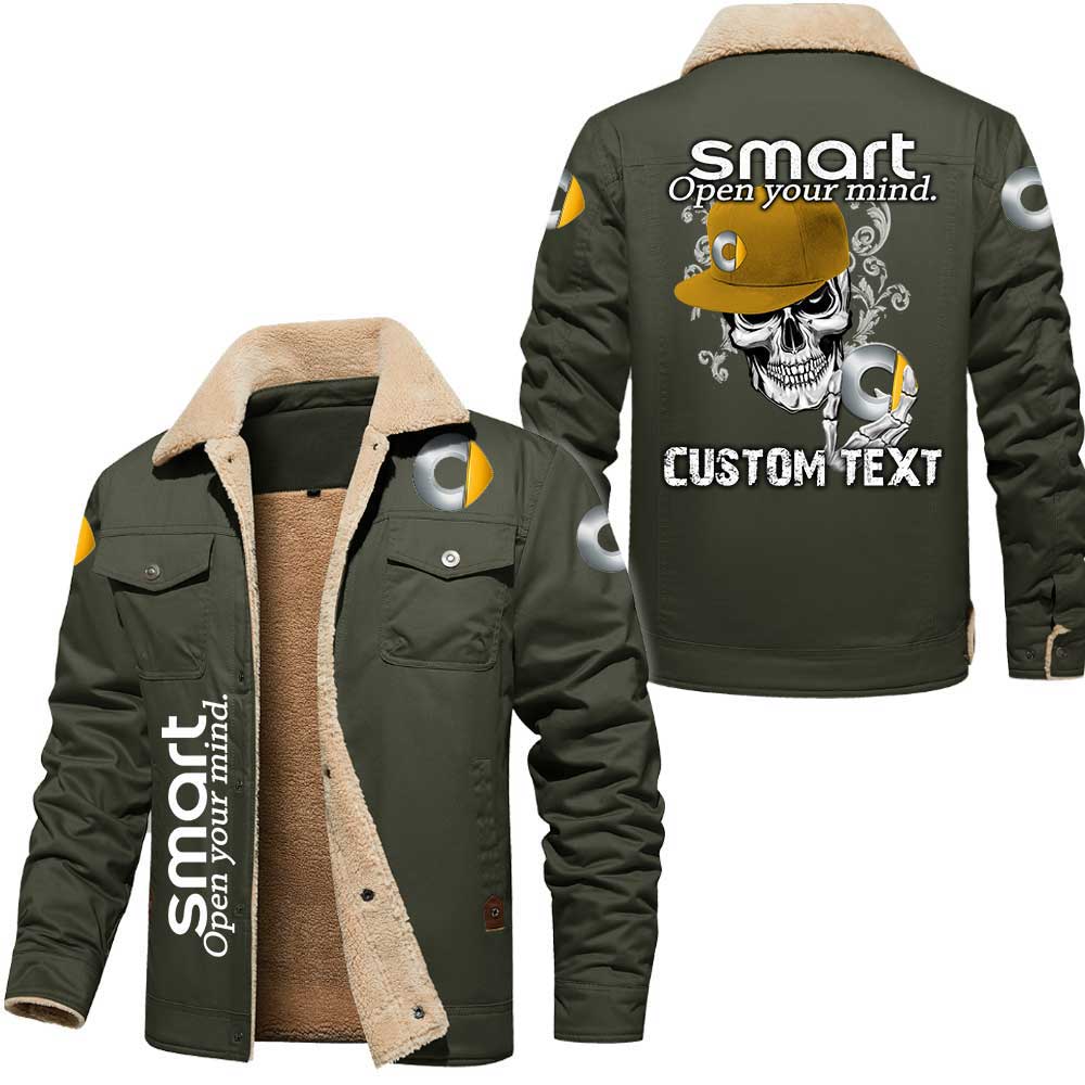 Smart Open Your Mind Skull Custom Name Cargo Fleece Lined Cotton Jacket
