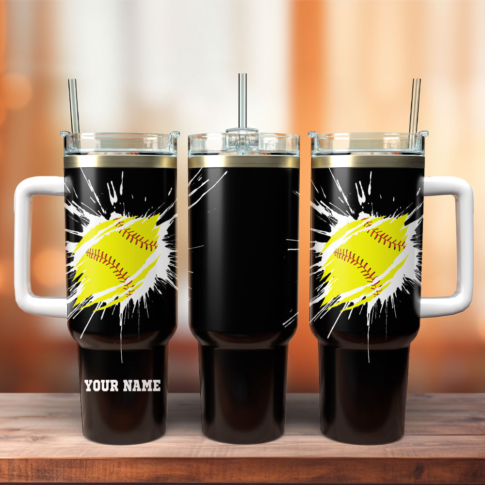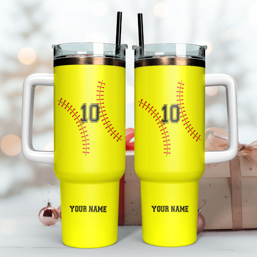 Softball Baseball Yellow Sport Custom Stanley Quencher 40Oz Stainless Steel Tumbler With Handle