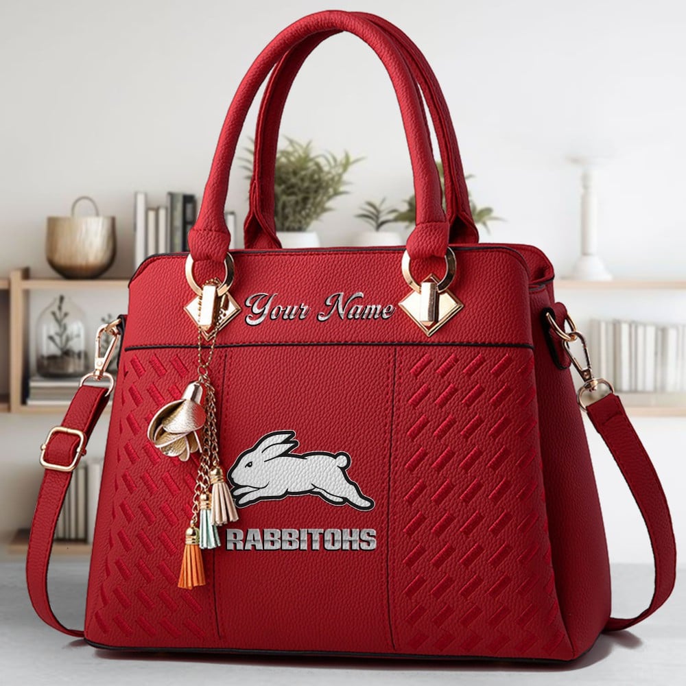 South Sydney Rabbitohs Logo Crossbody Zip Hand Bag With Tassel Custom Name For Women
