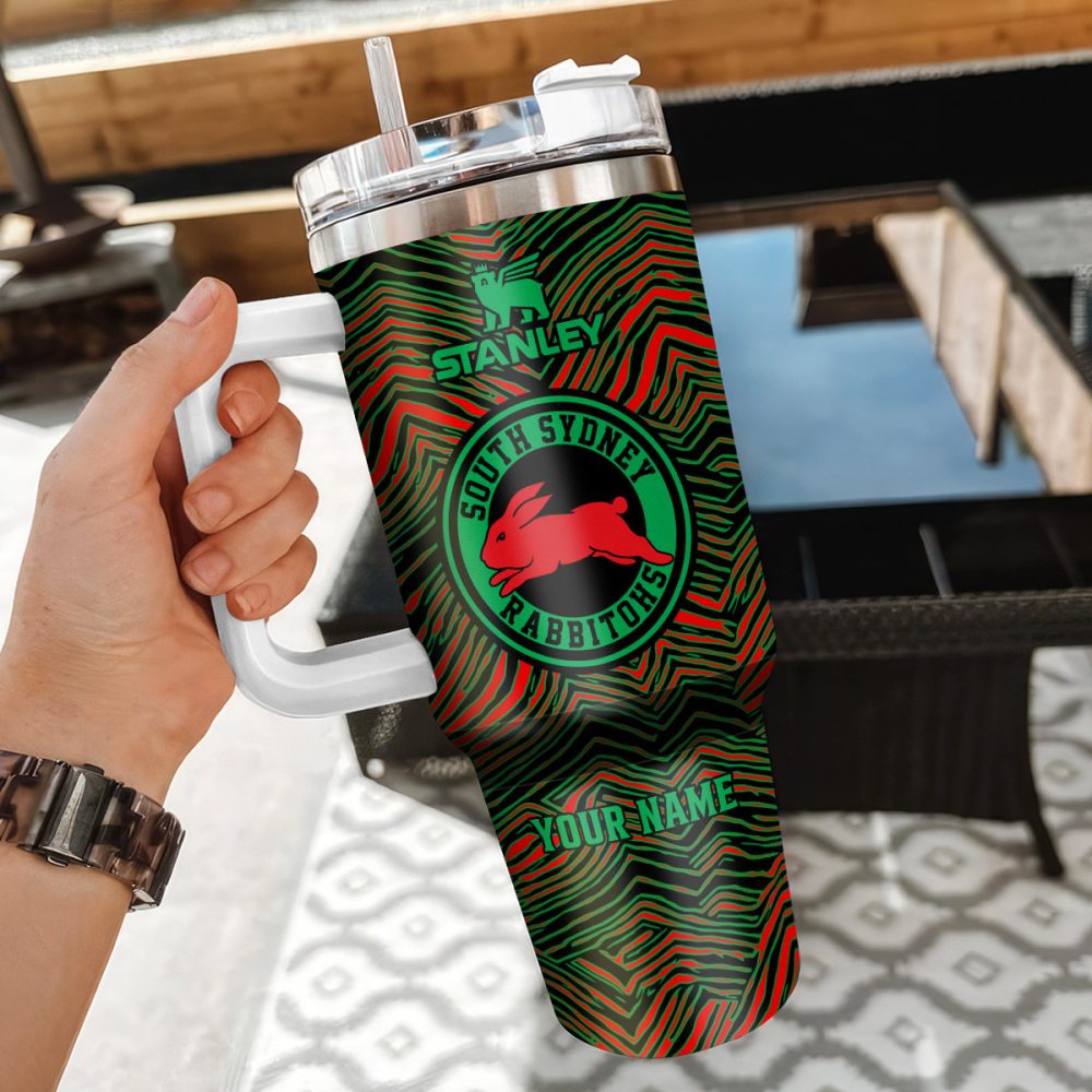 South Sydney Rabbitohs Nrl Zubaz Print Custom Stanley Quencher 40Oz Stainless Steel Tumbler With Handle