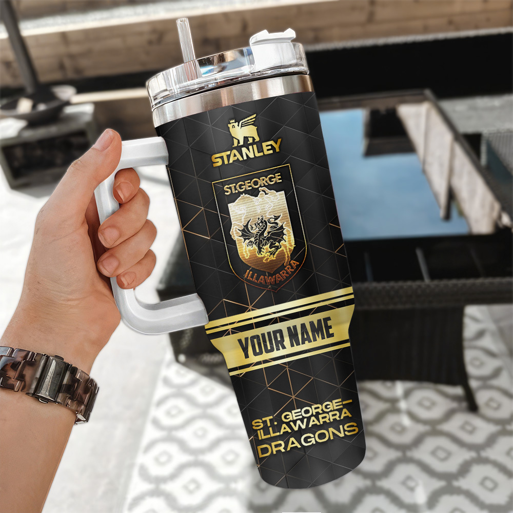 St. George Illawarra Dragons Nrl Golden Logo Custom Stanley Quencher 40Oz Stainless Steel Tumbler With Handle