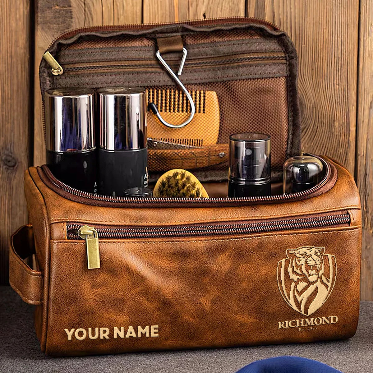 St Kilda Saints AFL Exclusive Logo Personalized Leather Toiletry Bag, Fishing Leather Toiletry Bag