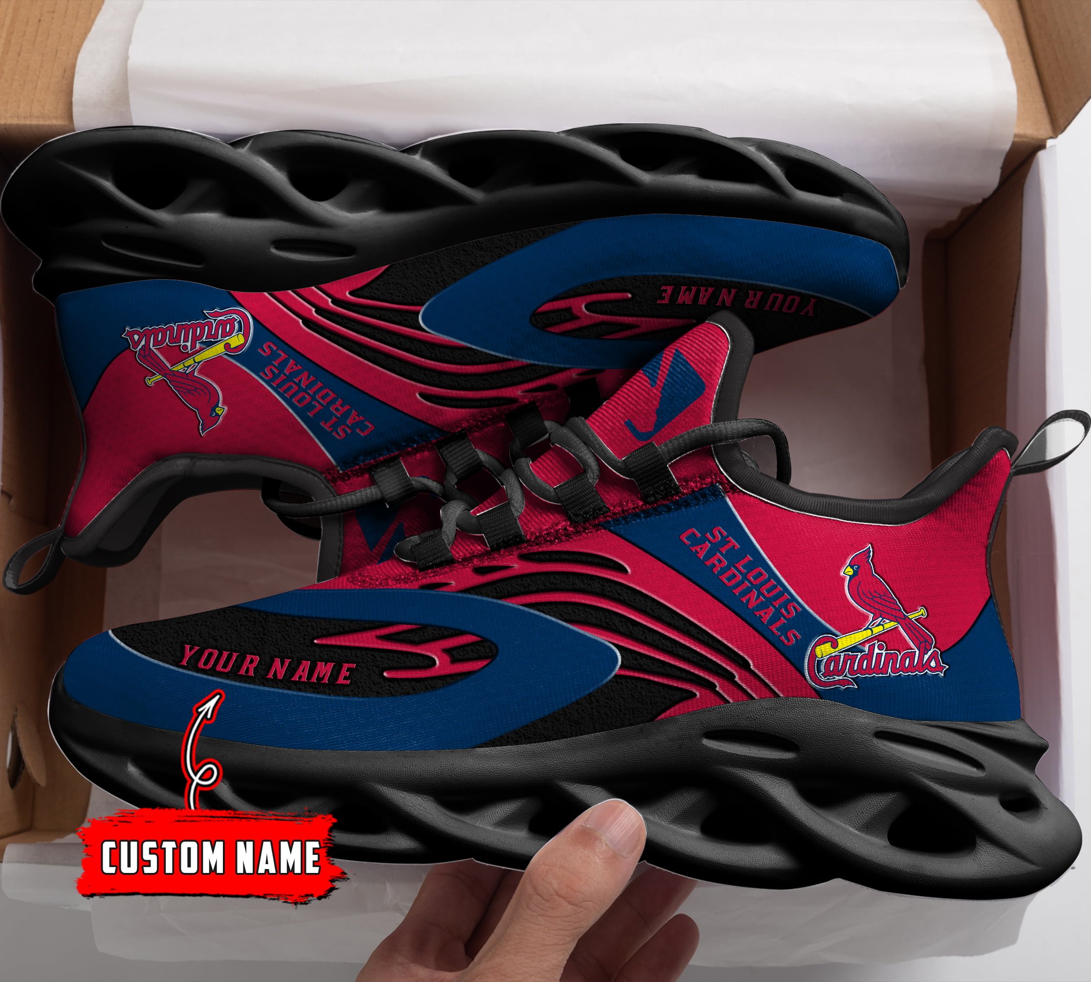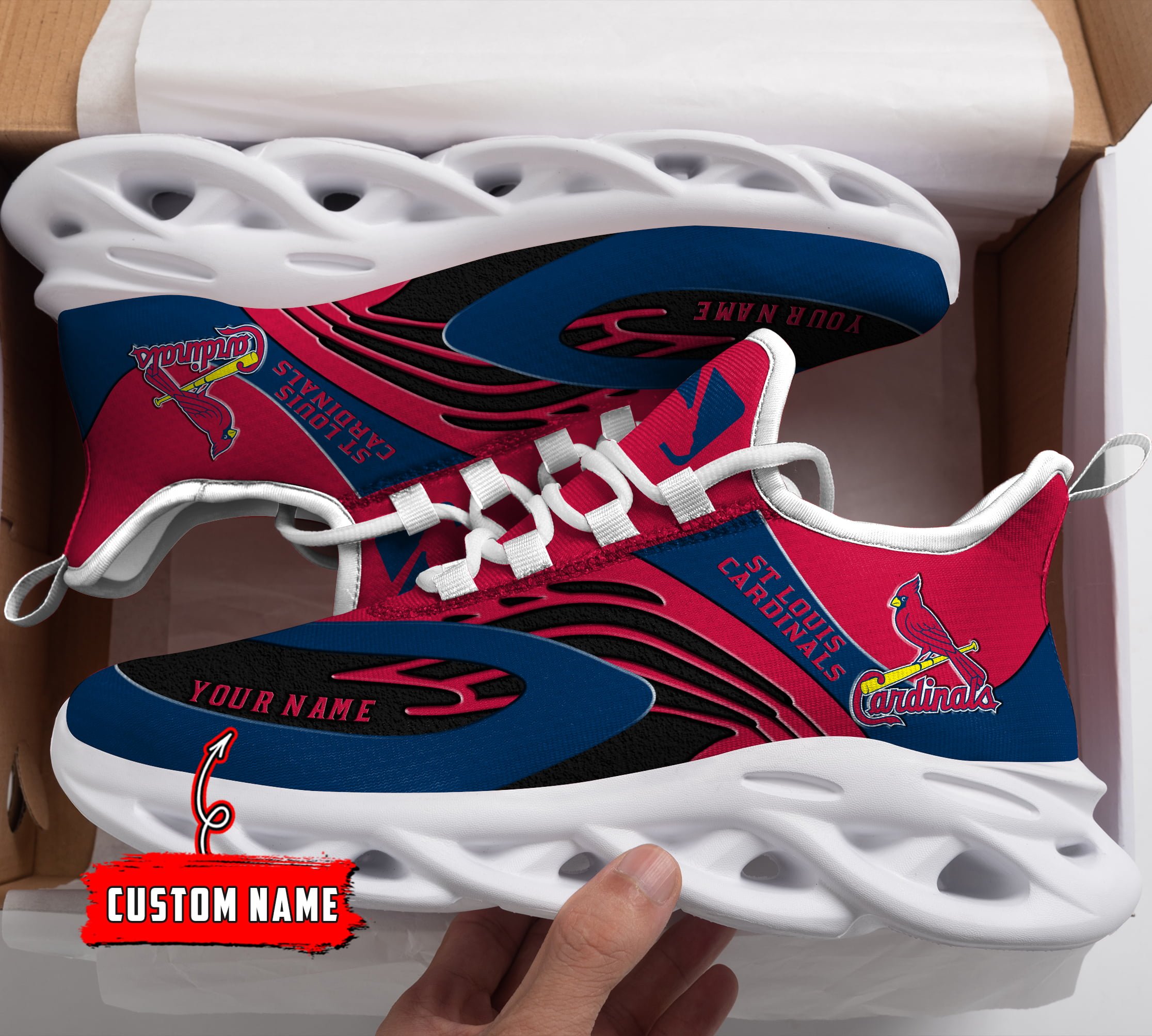 St Louis Cardinals MLB Max Soul Shoes Sneakers Printed White And Black Sole For Men And Women