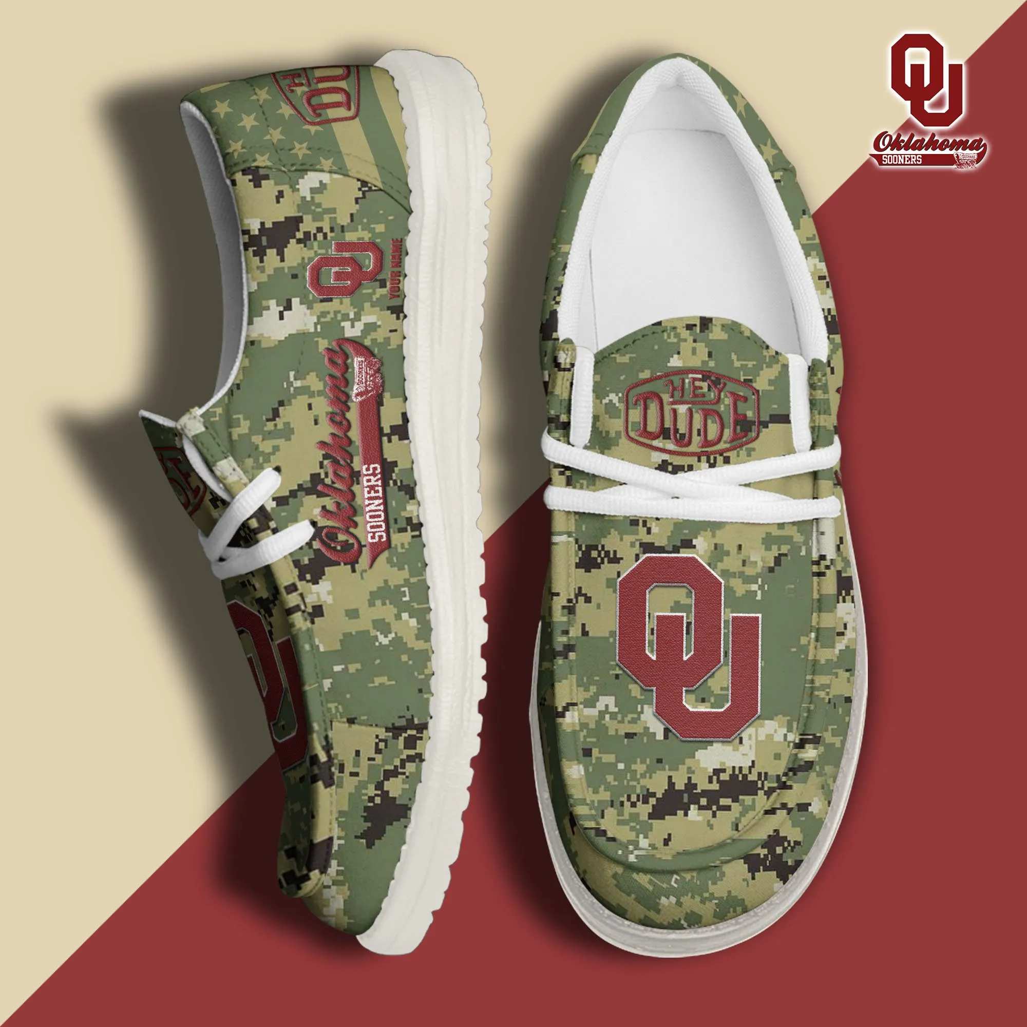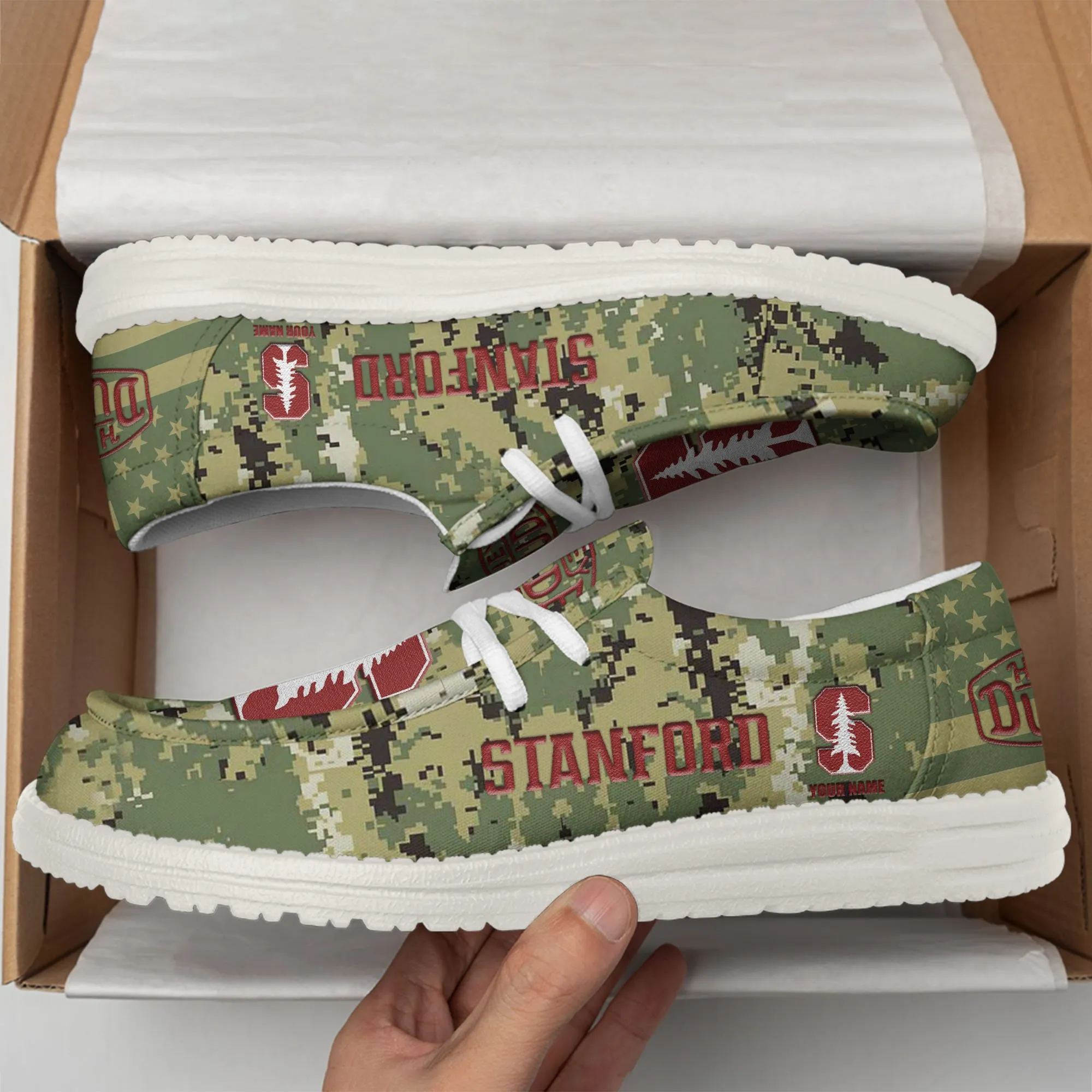 Stanford Cardinal 3D Print Dude Shoes Camo Green Best Gift For Sport Fan